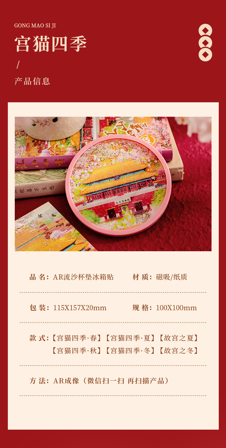 北京故宮四季文創AR滑り止め流砂カップマットカスタマイズ創意旅行お土産冷蔵庫に断熱マットを貼る