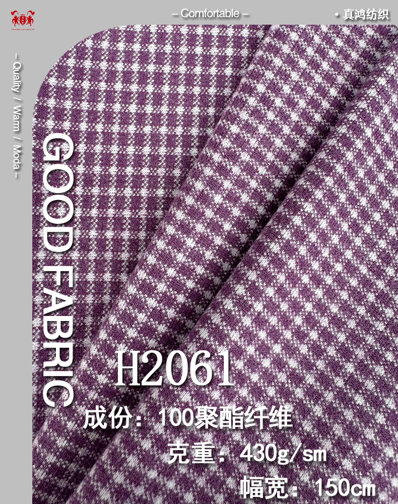 ポリエステル100%ニットストレッチ薄手千鳥格子柄ウール生地秋冬ファッションコート・オーバーコート・靴・帽子生地卸売