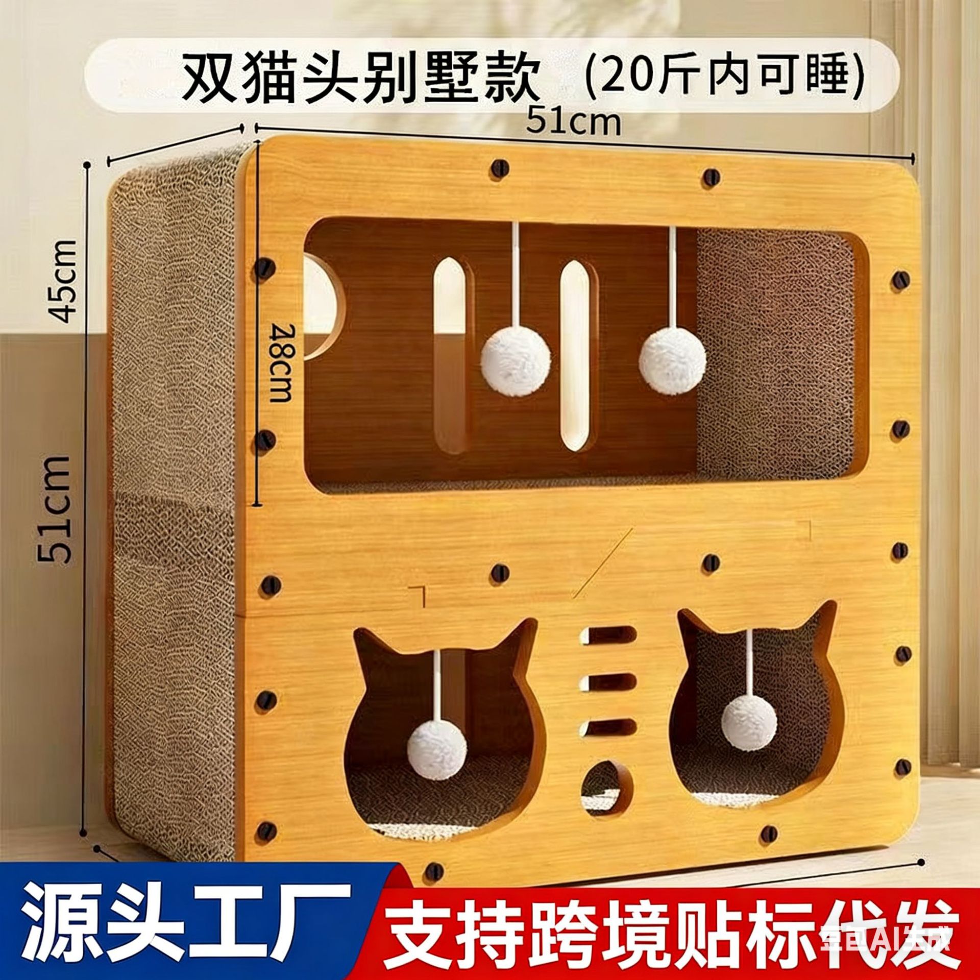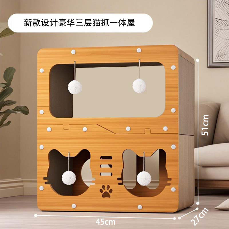 猫抓板窝耐磨不掉屑多功能猫窝特大四季通用猫别墅猫跨境电商