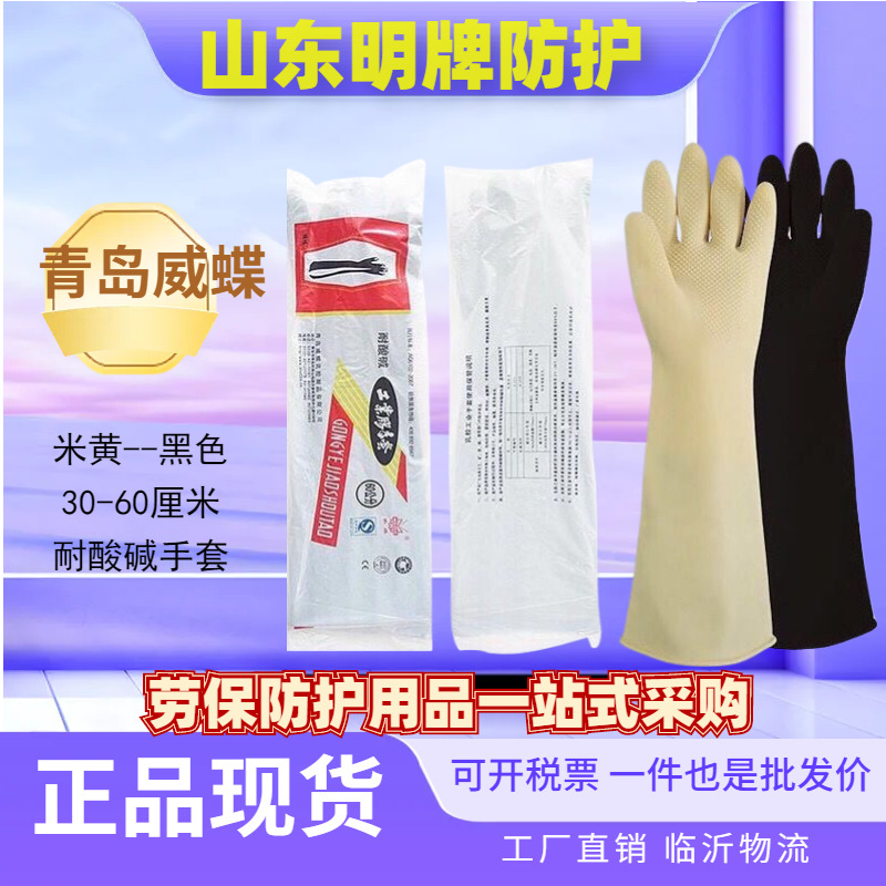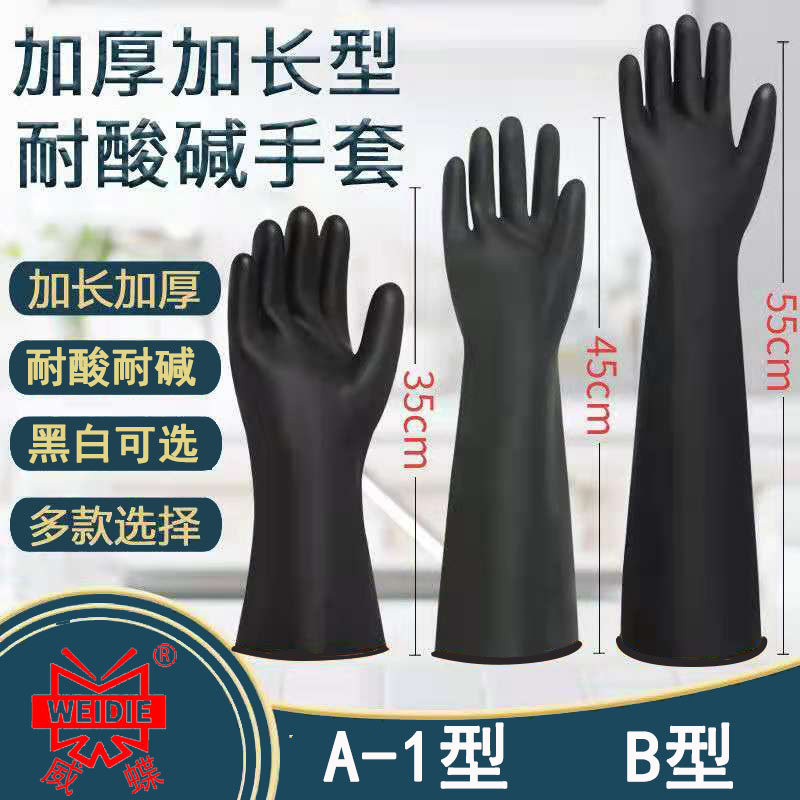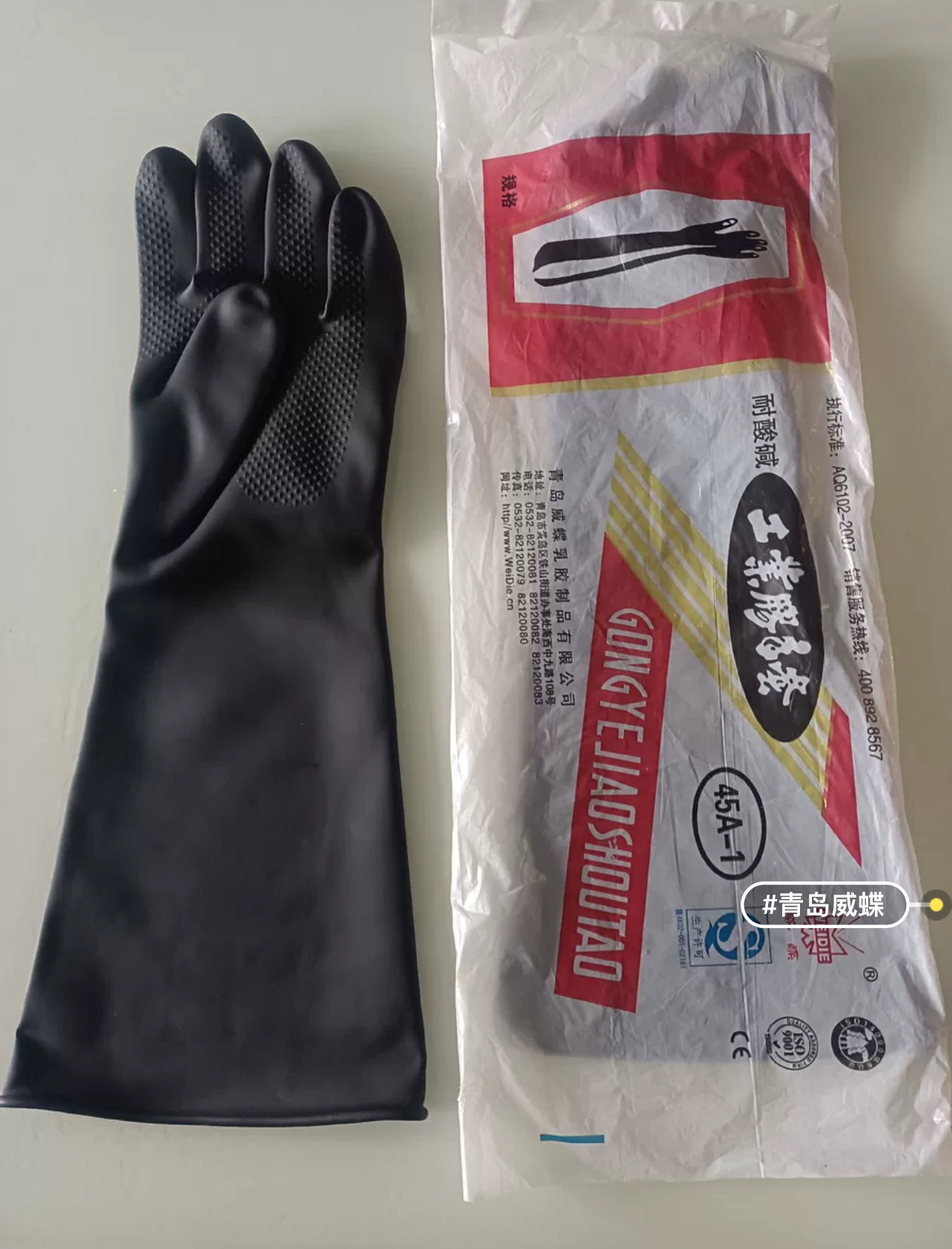 正品威蝶工业手套45厘米化工专用黑色白色加长乳胶耐酸碱防化手套