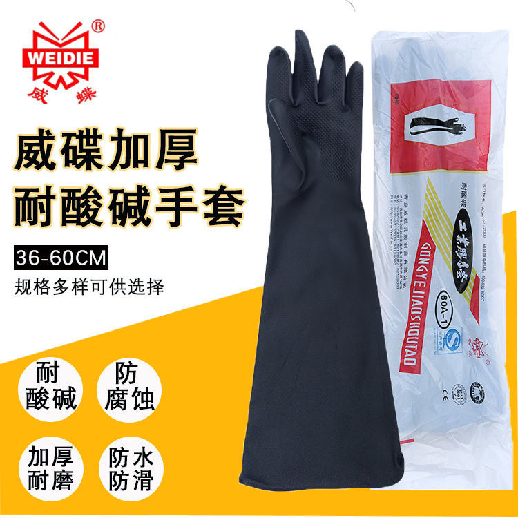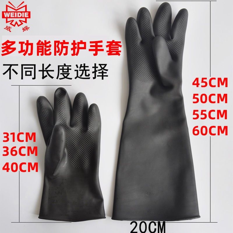 メーカー卸売 黒色ウェイディエ 31-60cm 汎用労働保護滑り止め工業用ラテックス手袋 耐酸アルカリ保護