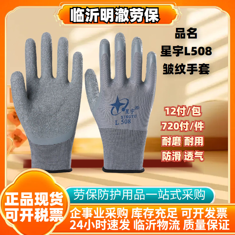星宇L508労働保護ゴム製耐摩耗性滑り止め工事現場木工ガラス運搬用ラテックスしわ加工手袋、特殊耐切創