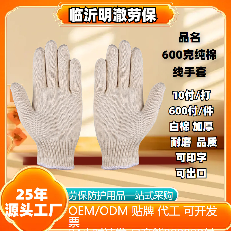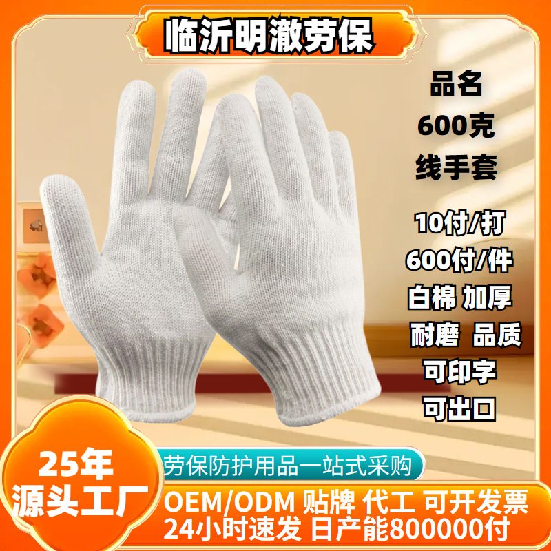 工場直送600g白細糸手袋ランプシェード綿厚手増量耐摩耗性滑り止め純綿保護