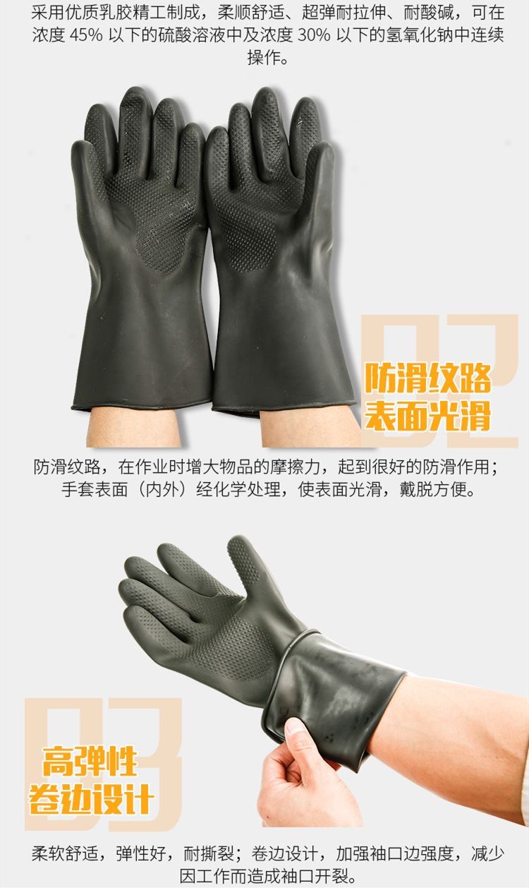 威蝶酸アルカリ手袋黒白色工業ゴム手袋厚い防食防水ゴム手袋