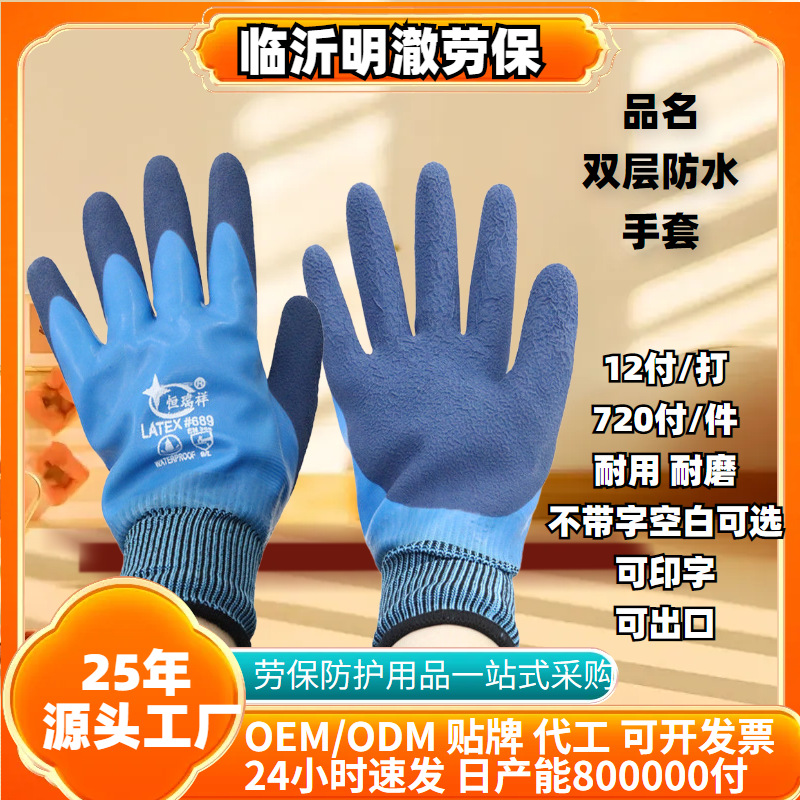 二重層浸漬加工の厚手の労働保護手袋、耐油性、海水産業作業用、耐摩耗性、滑り止め、ラテックス防水、耐油性、耐摩耗性