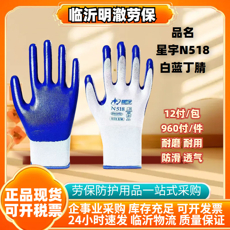 星宇N518ニトリル製安全作業用手袋、耐摩耗性、耐油性、工事現場作業、メンテナンス、保護、耐切創、工事現場専用
