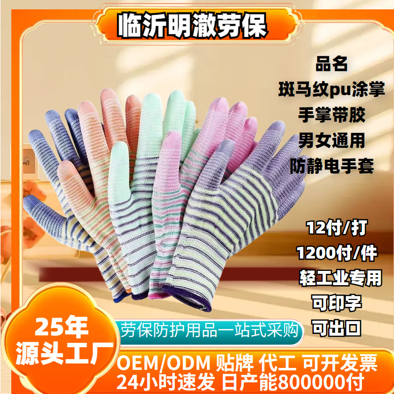 卸売十三針ナイロン手袋、ゼブラ柄薄型、耐摩耗性、労働保護、通気性、滑り止め加工済み作業用手袋芯