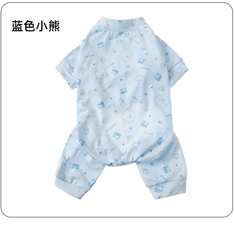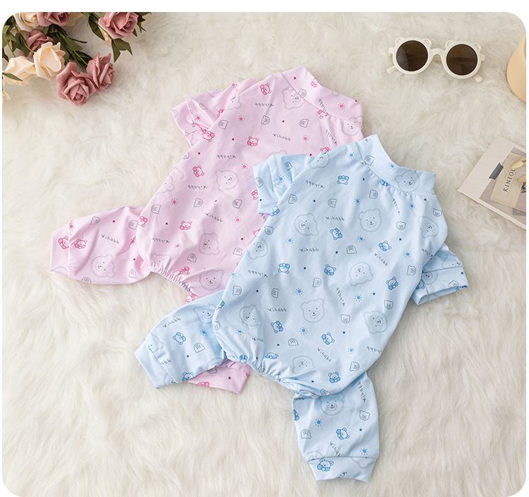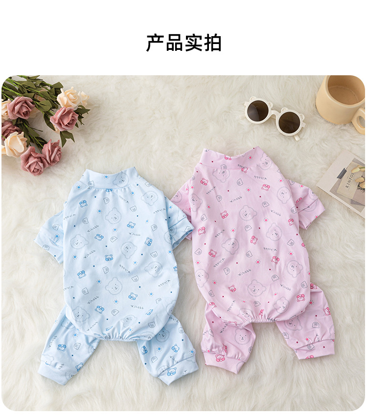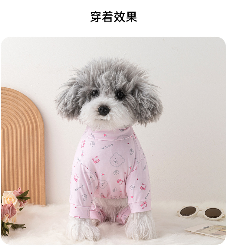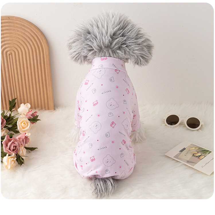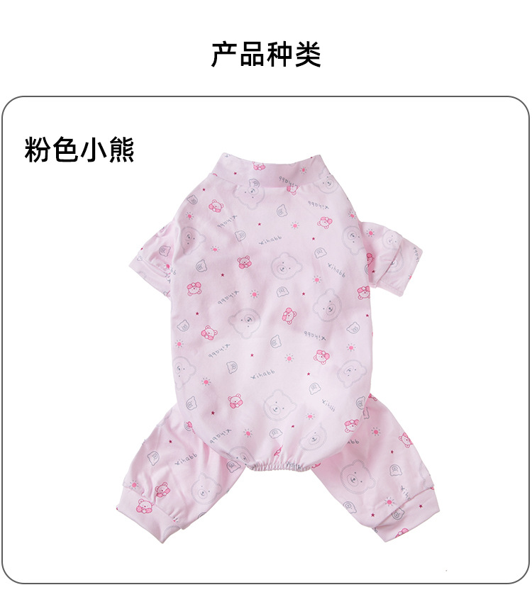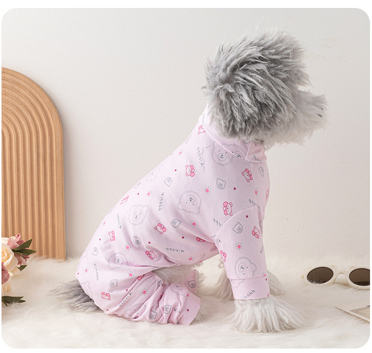 新商品の源工場のかわいい犬の四足の服秋冬の熊のプリントのパジャマと寝帽子のピンクのペット