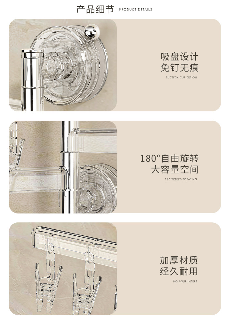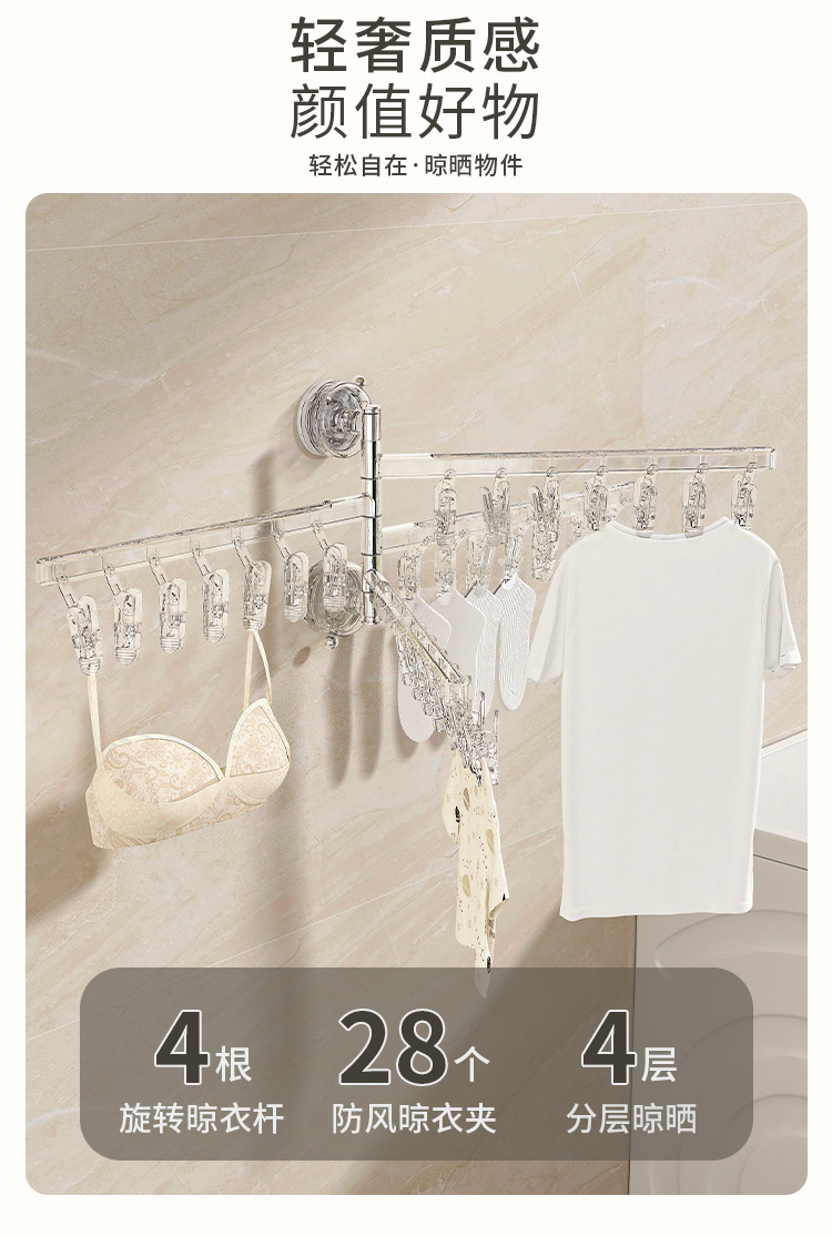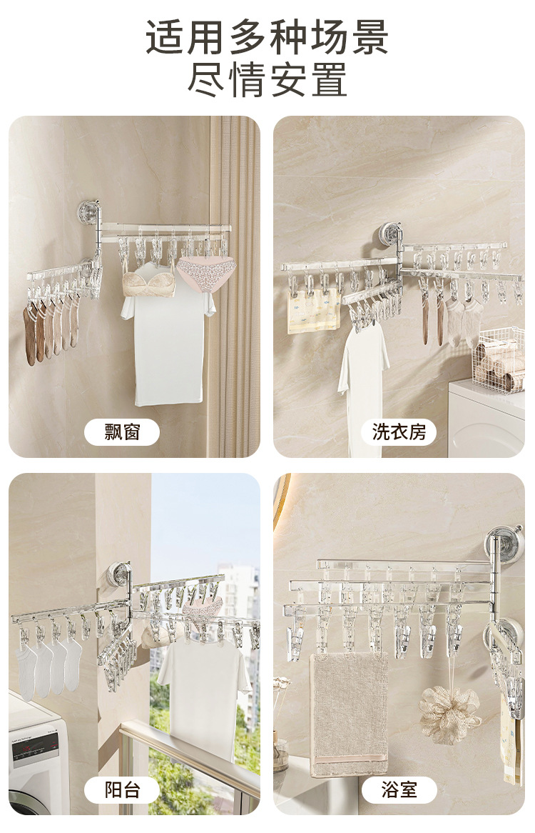クロスボーダー真空吸盤物干しラック折りたたみ回転干しラック靴下下着干しハンガーベランダハンガー収納