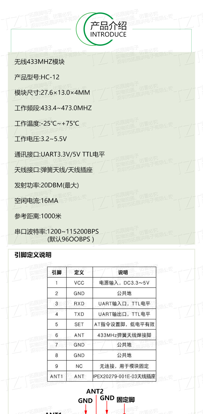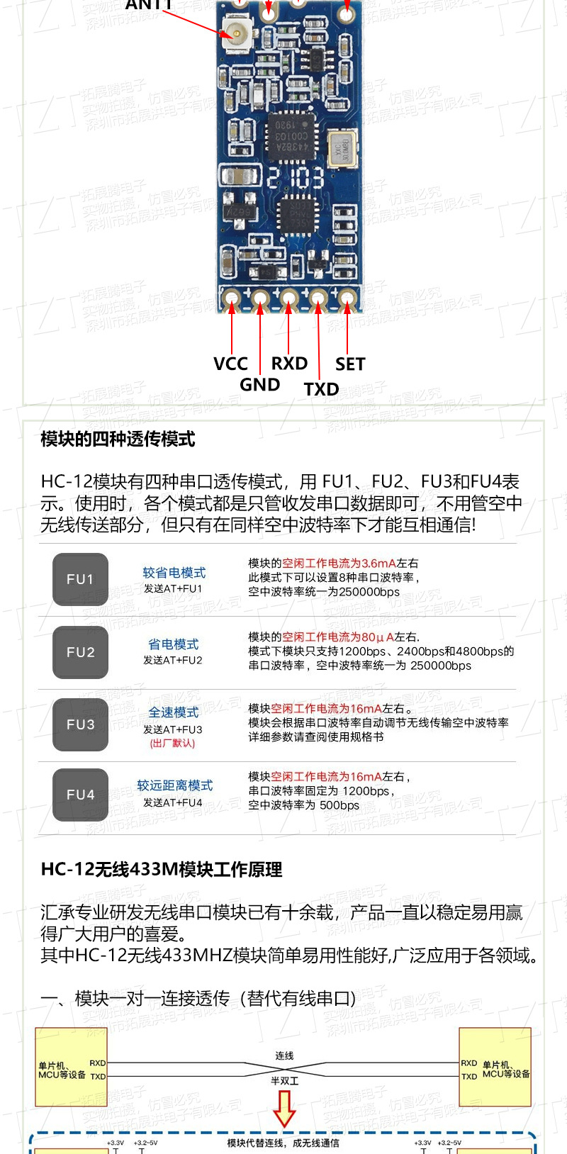HC-12 SI4438/4463無線モジュール遠距離433M無線シリアルモジュールUARTインターフェイス