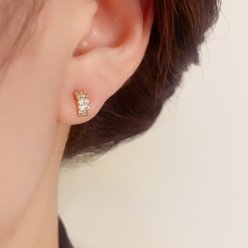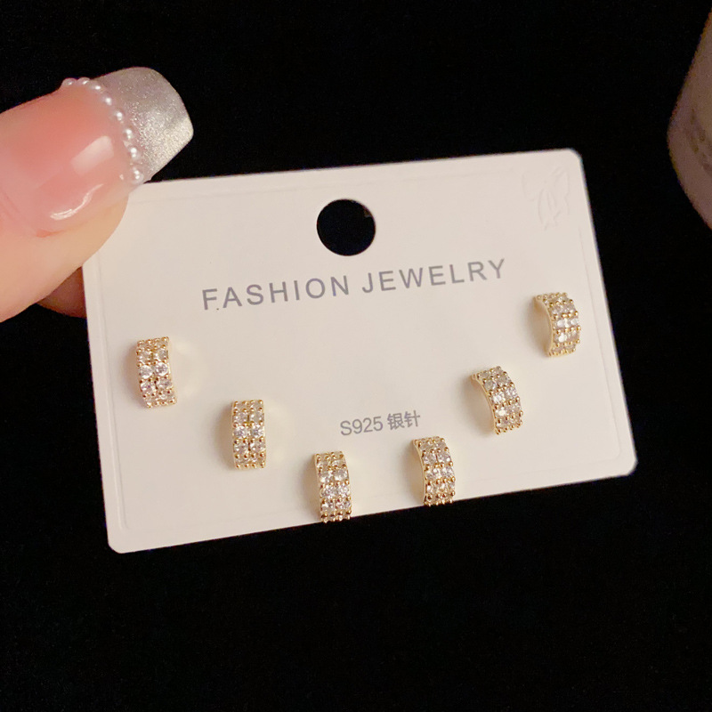 精致时尚百搭设计感镶钻几何三件套耳钉日常通勤简约小巧耳环批发