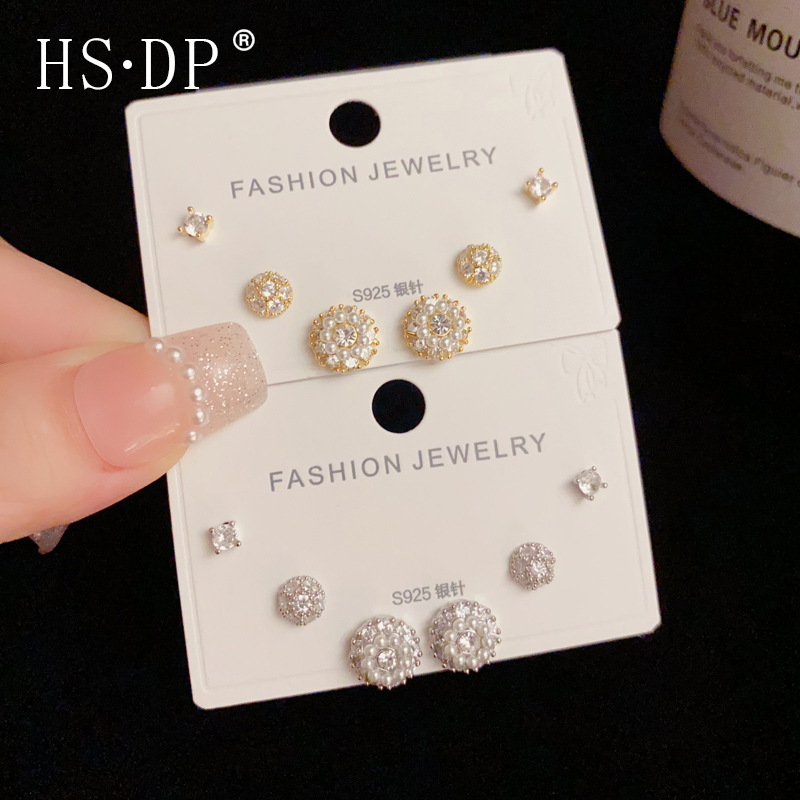 S925銀針の精巧なファッションは小さくて、ジルコンの真珠の円環の組み合わせのセットのピアスの気質は簡単です。