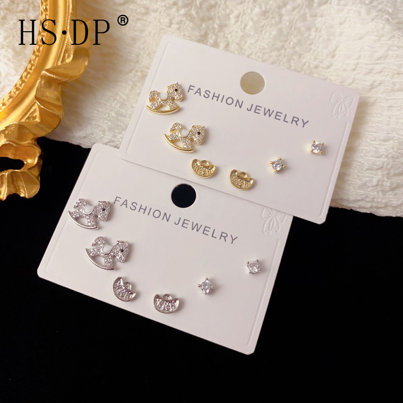 2026马年新款满钻小马元宝三件套耳钉女精致轻奢日常百搭耳环批发