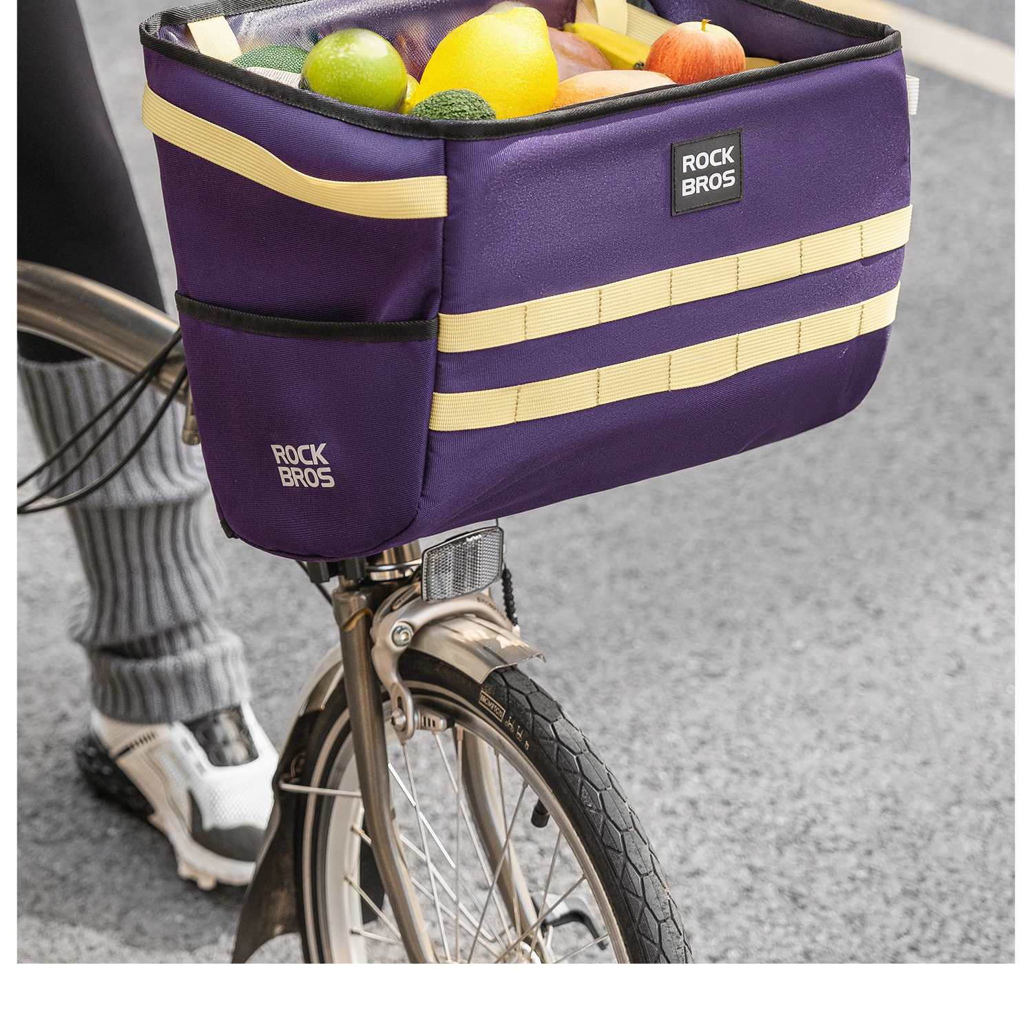 ロック兄弟の小さい布の車の頭は折り畳みの車の野菜のかごを包んで車の前で自転車に乗って通勤します。