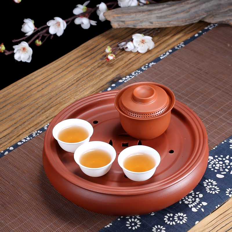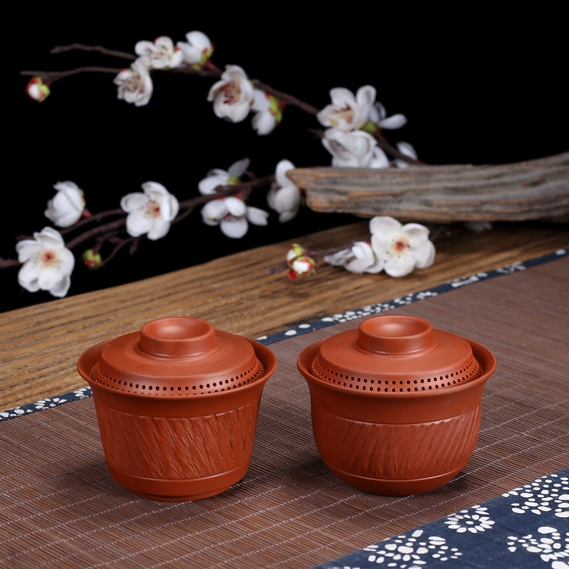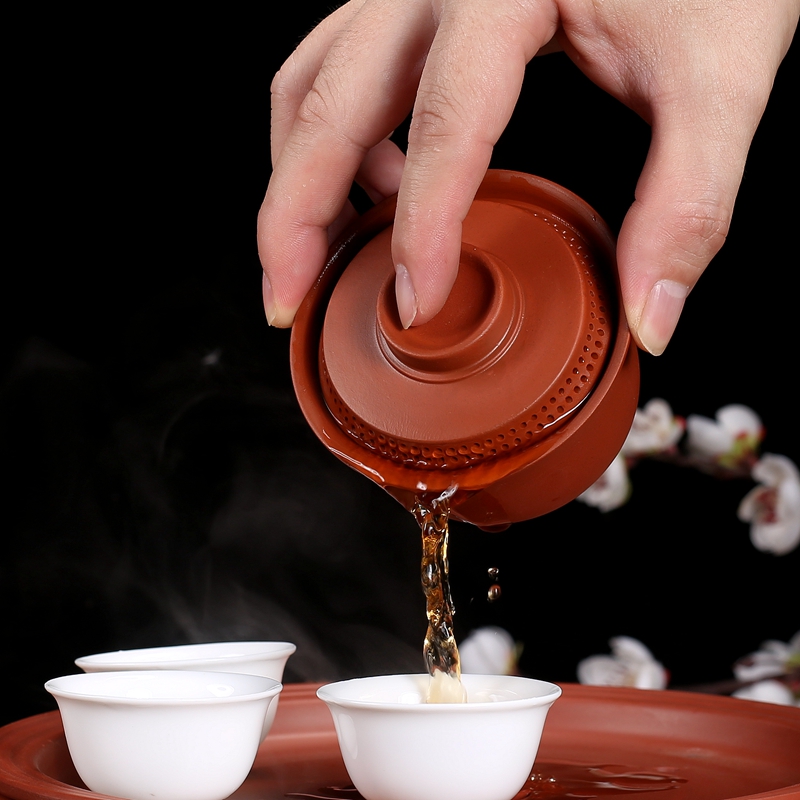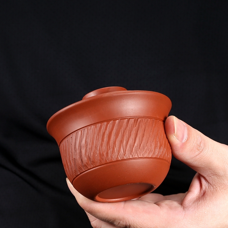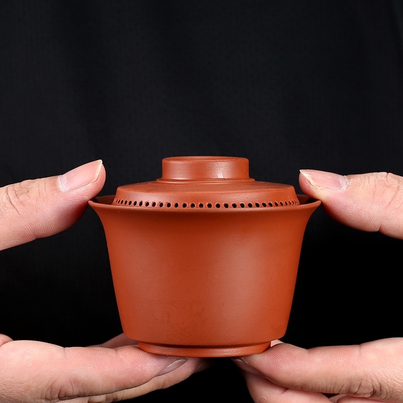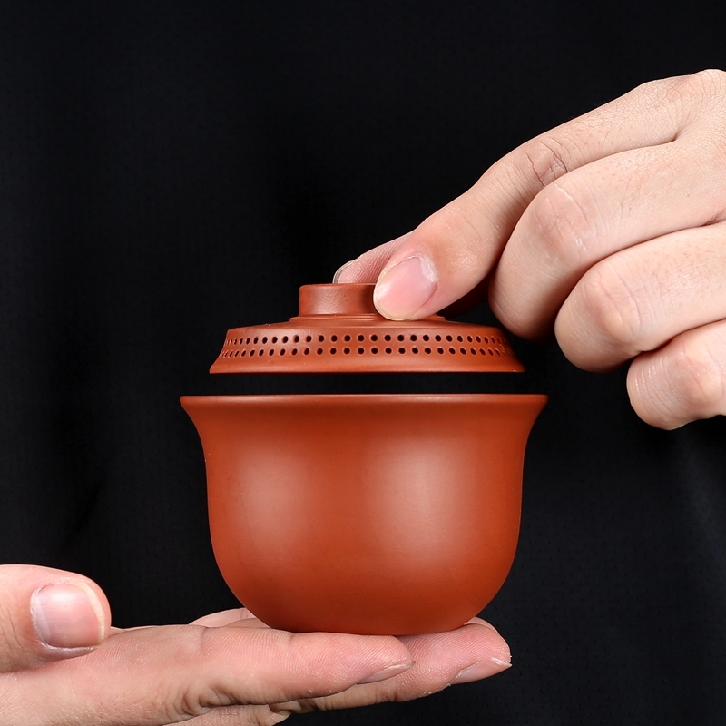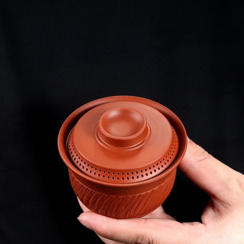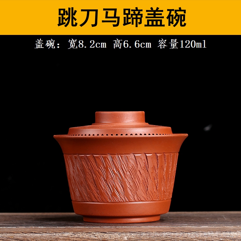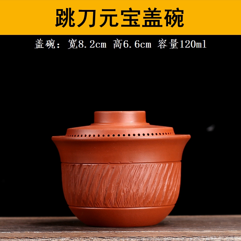 潮汕朱泥蓋碗陶磁器三才碗紫砂茶器手作り跳刀泡茶碗家庭用シンプル360出水