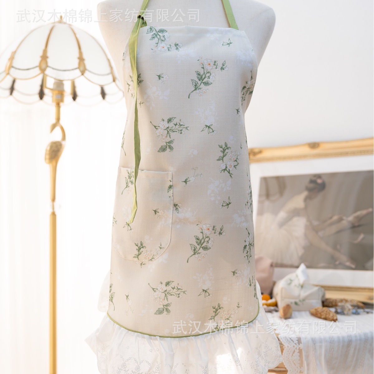 花のささやき花柄レースハーフエプロン耐油防汚家庭用エプロン