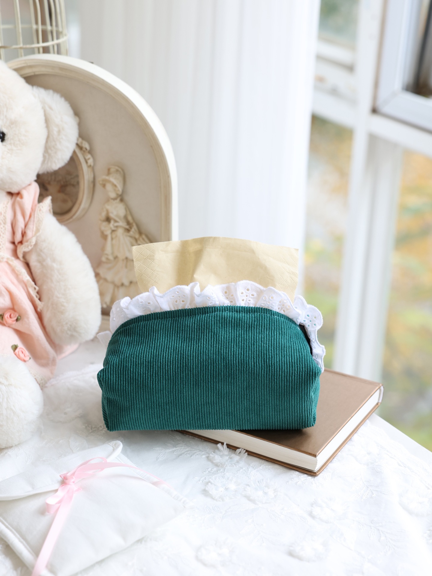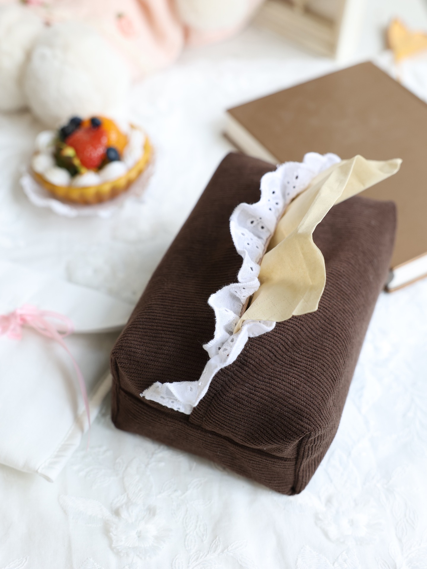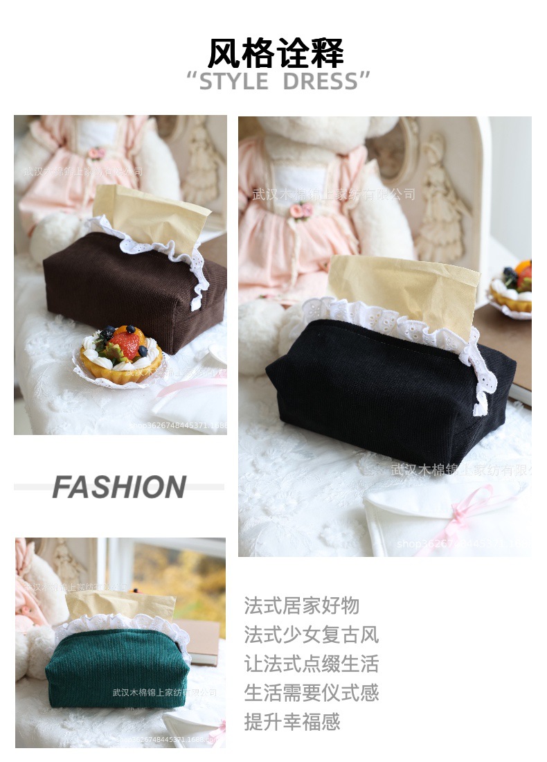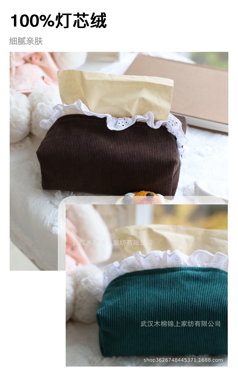 フランスのレトロなコーデュロイとレースのティッシュ
