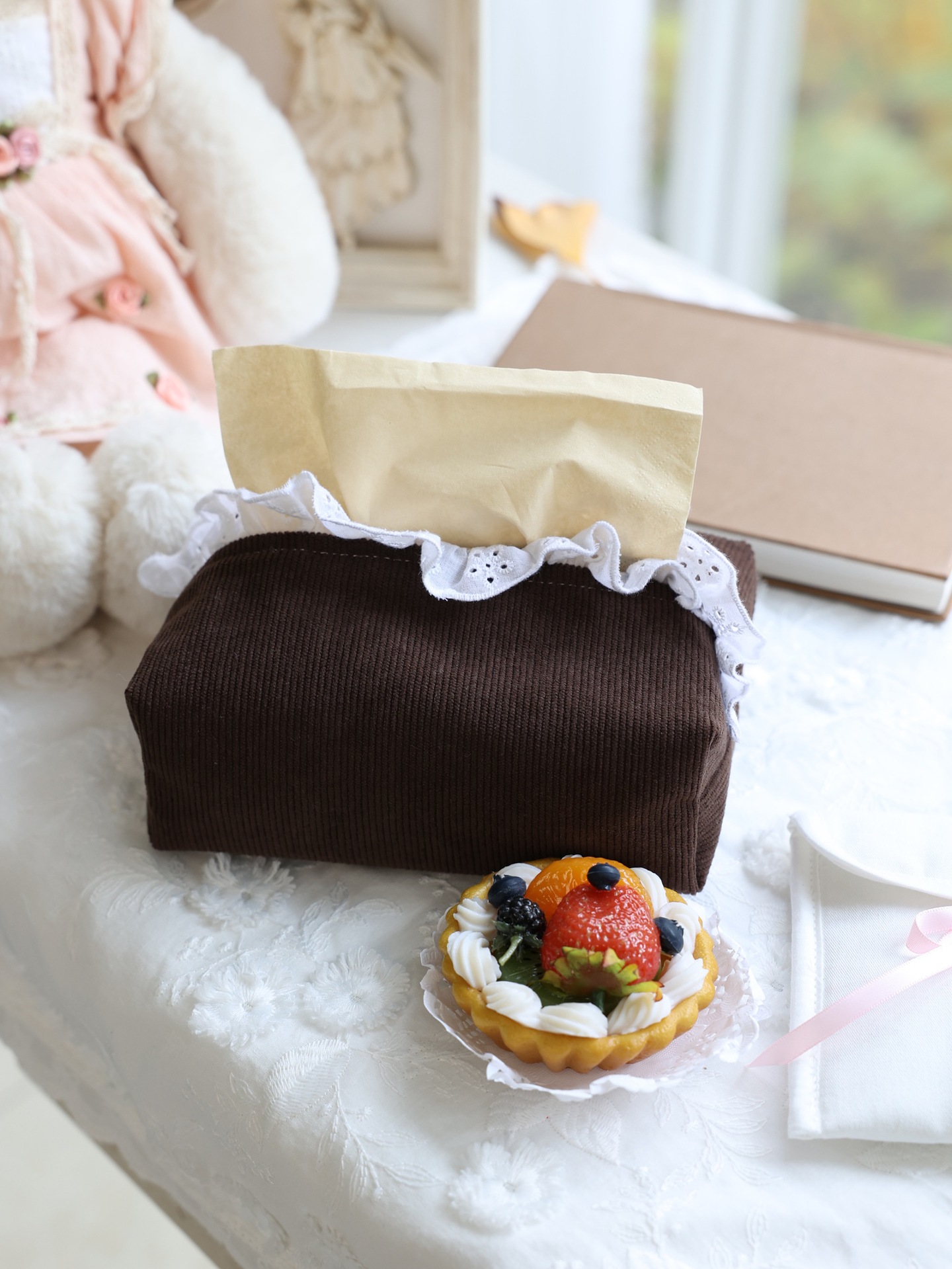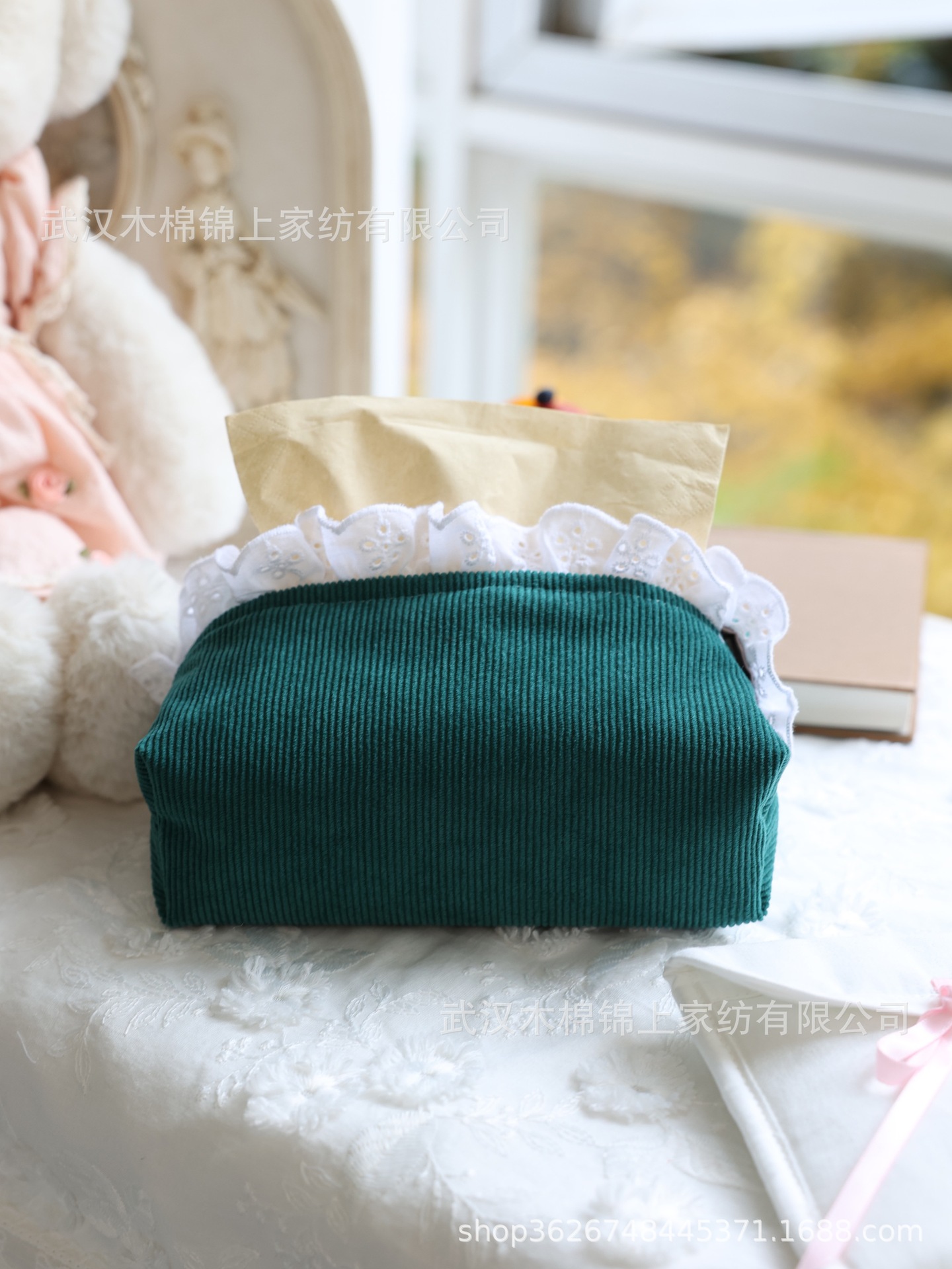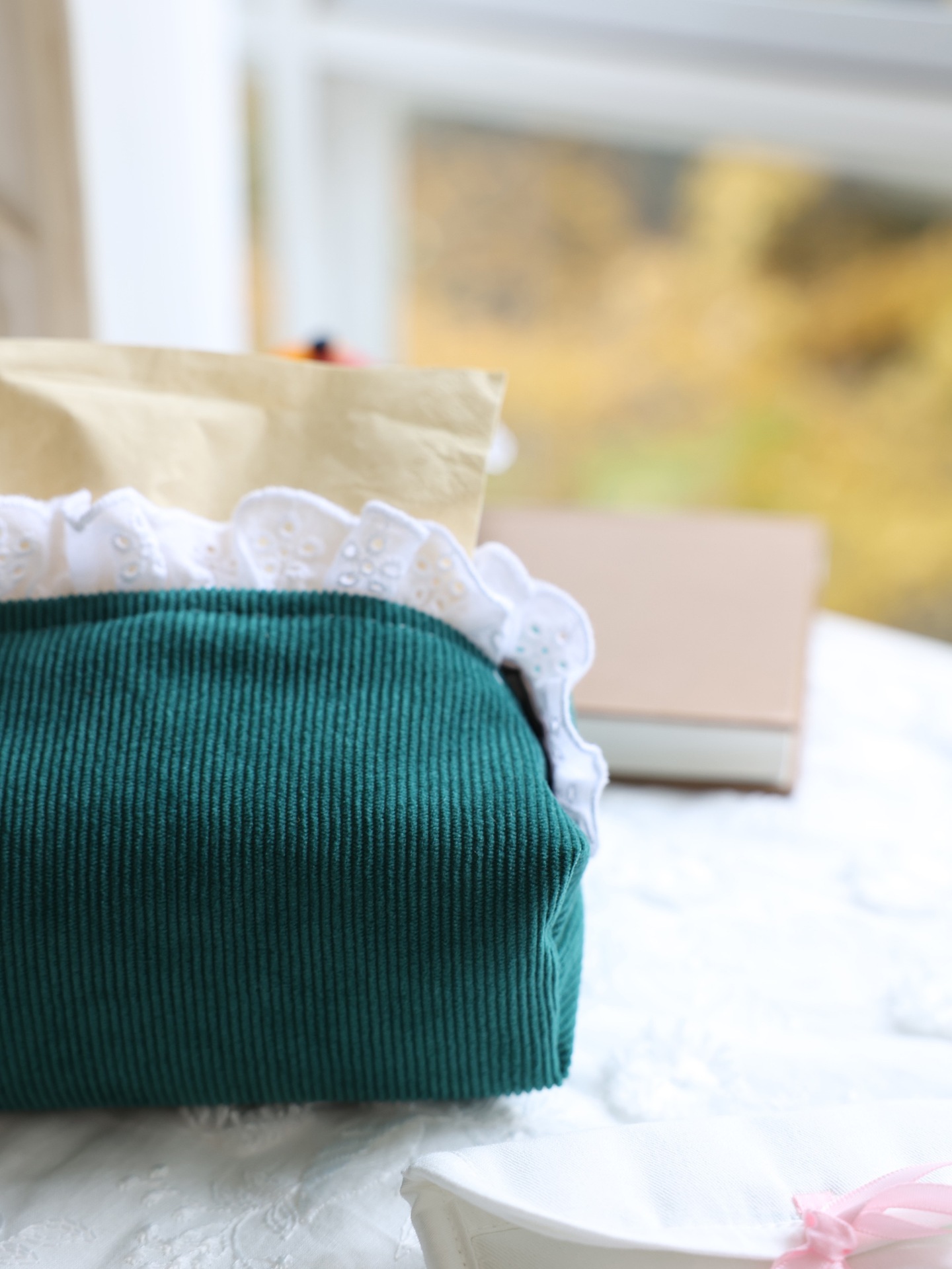 フランスのレトロなコーデュロイとレースのティッシュ