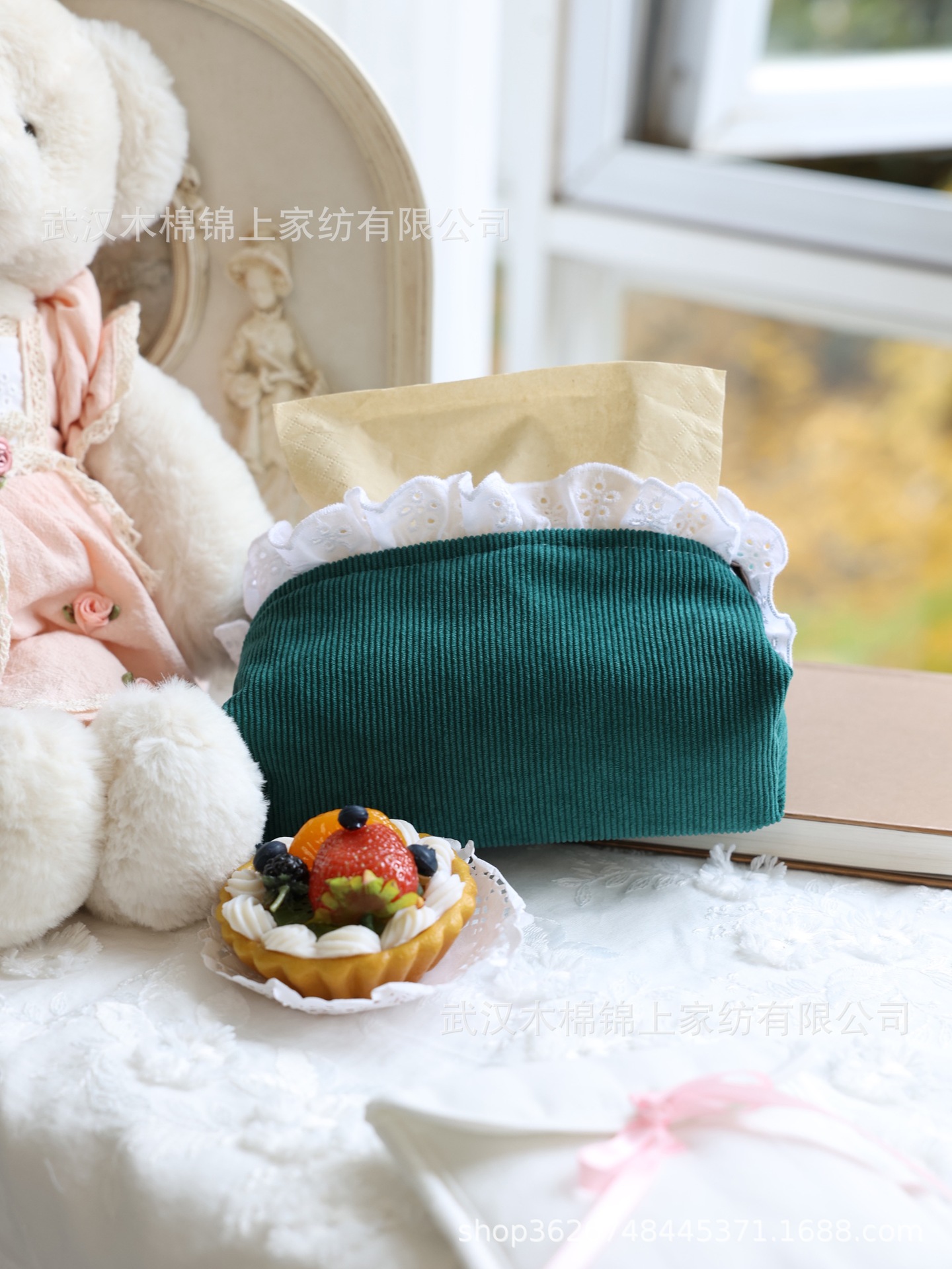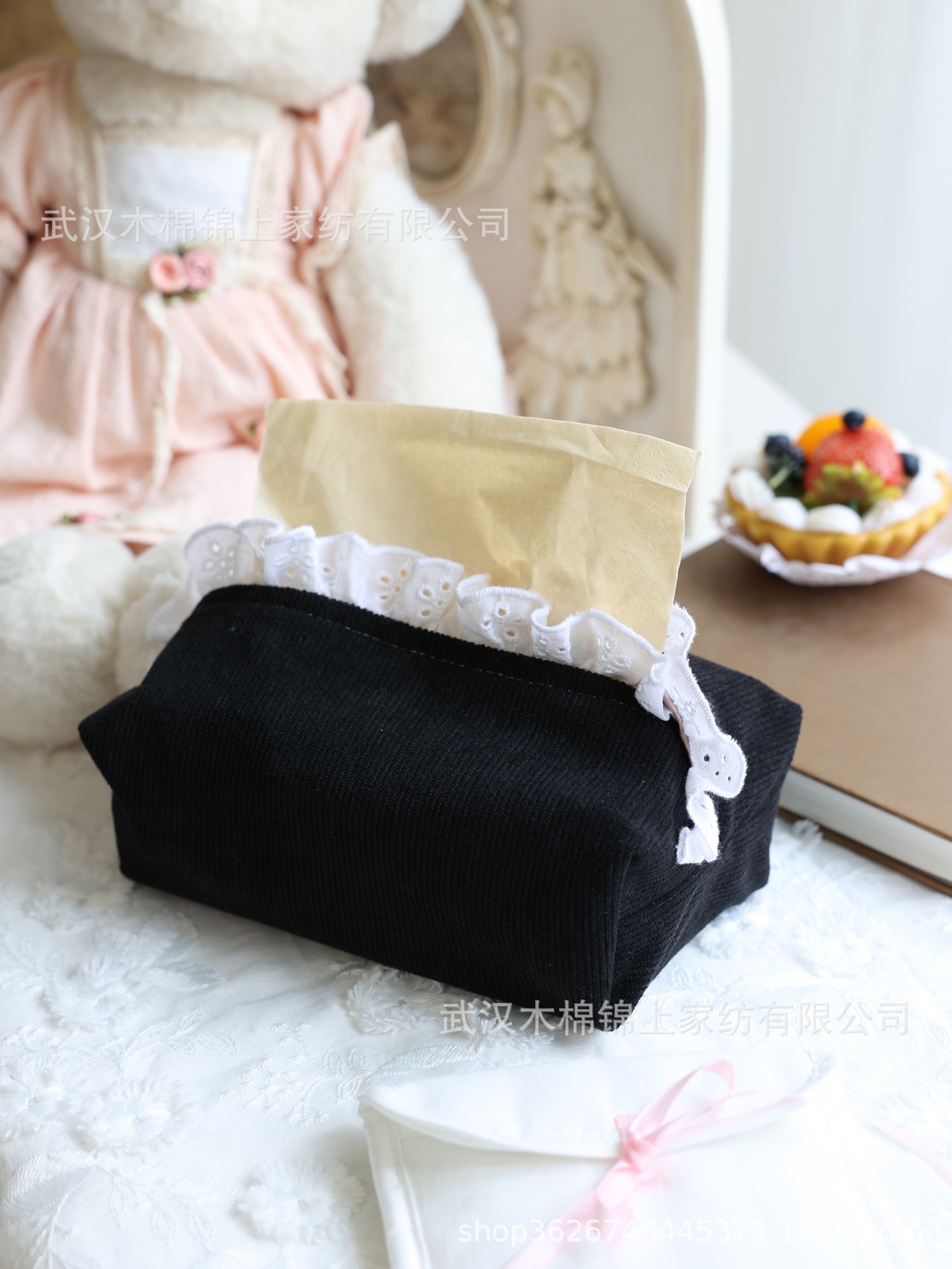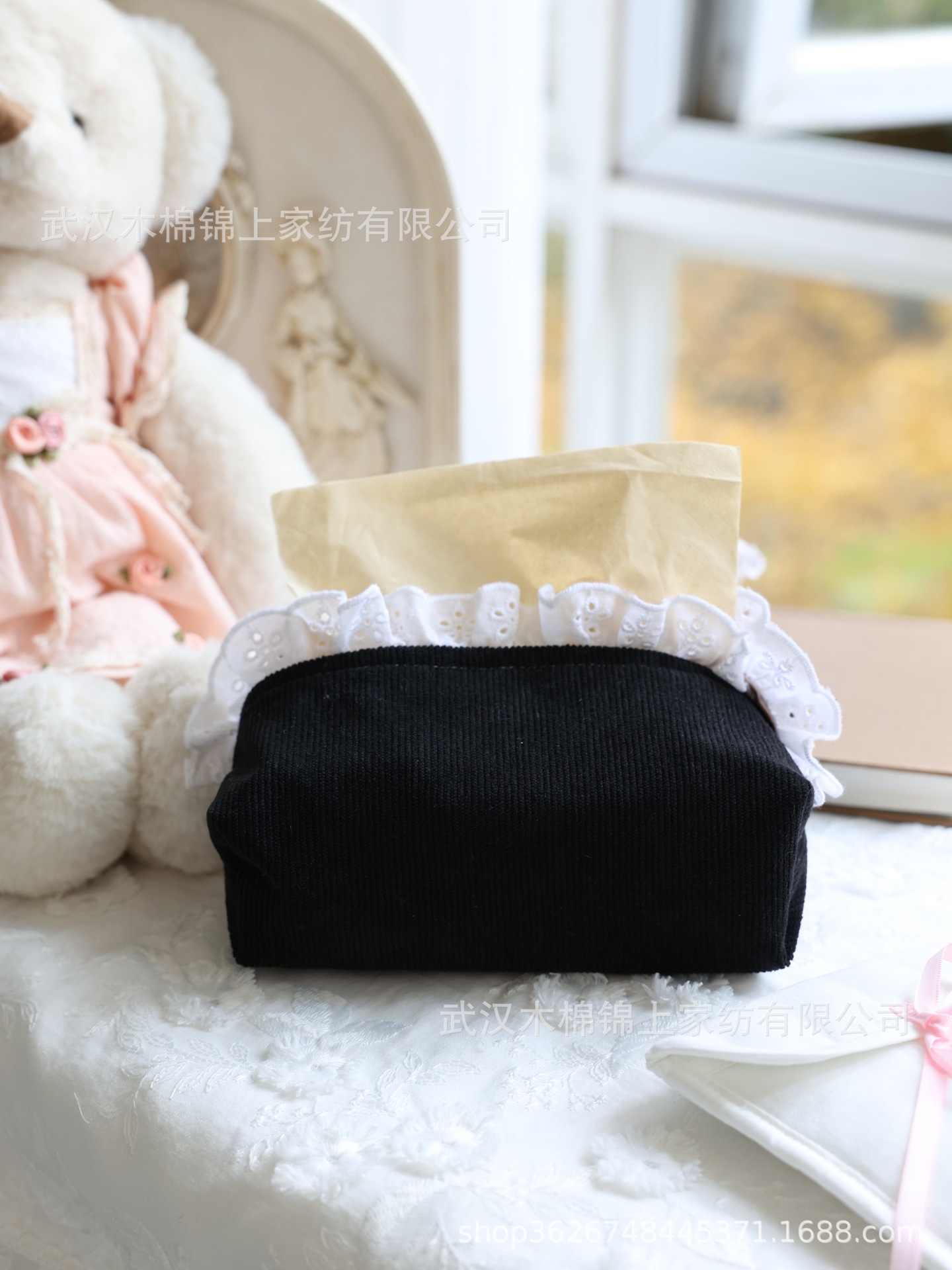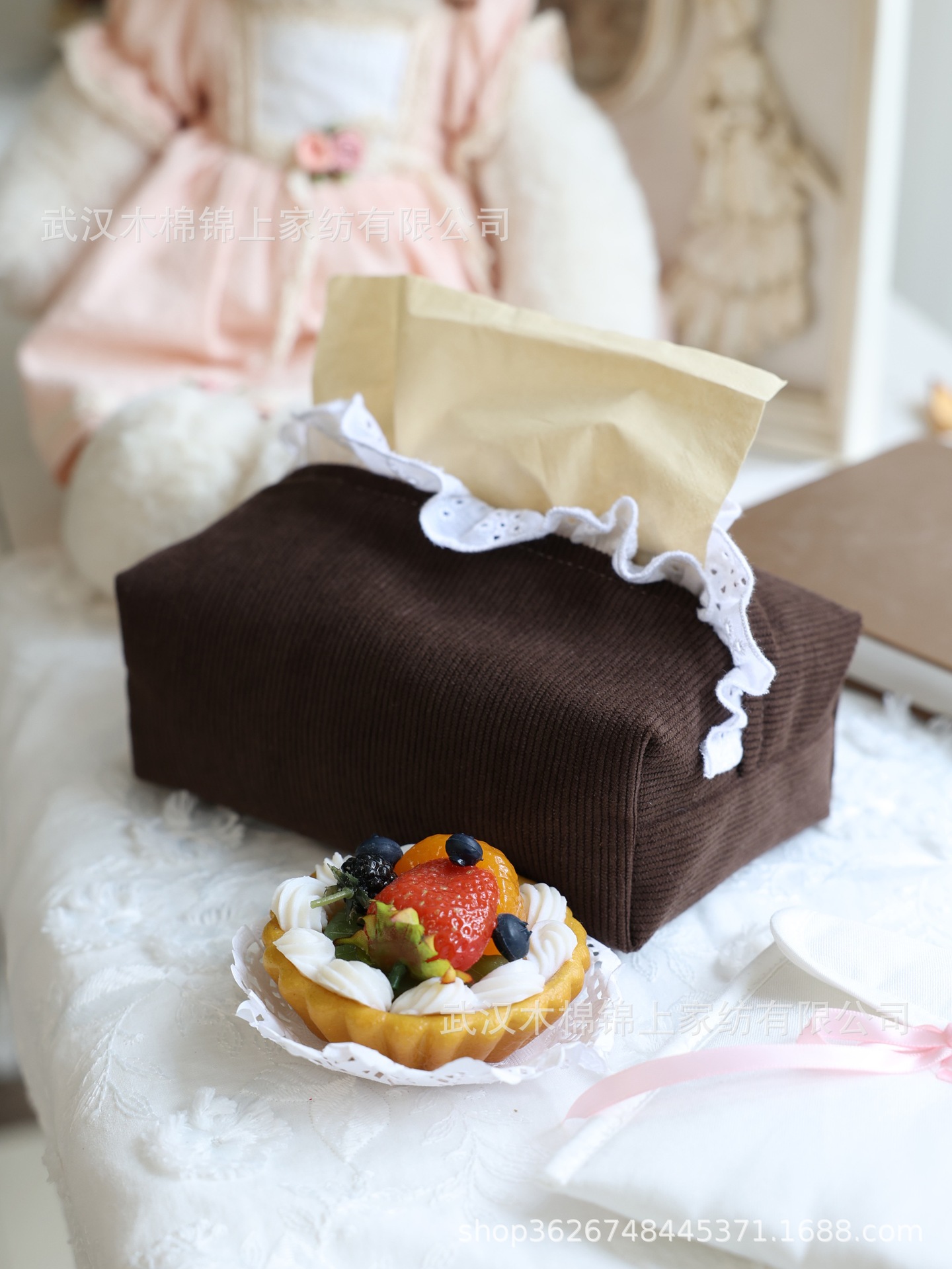 フランスのレトロなコーデュロイとレースのティッシュ