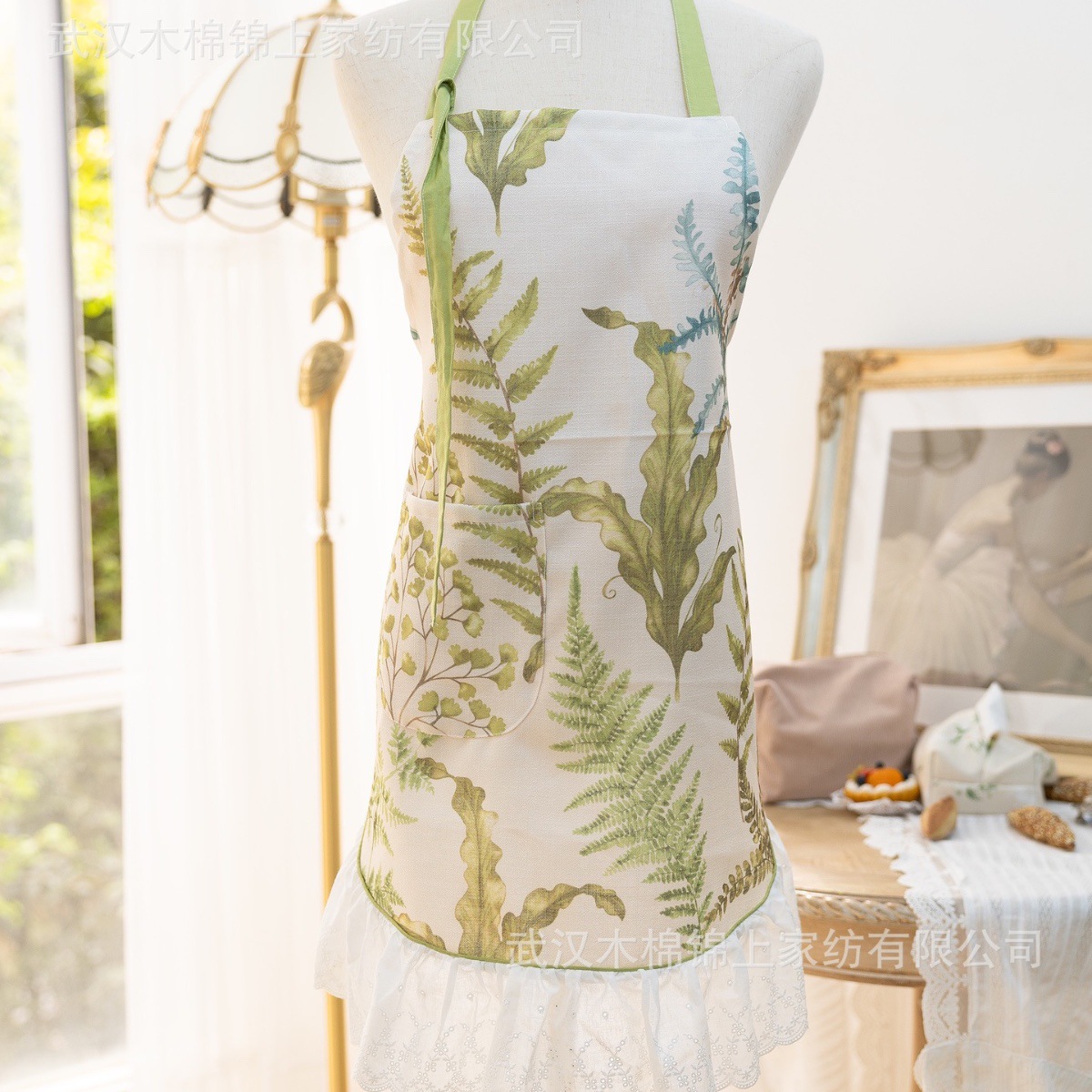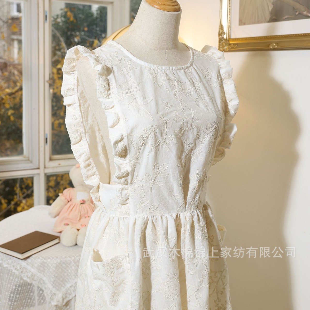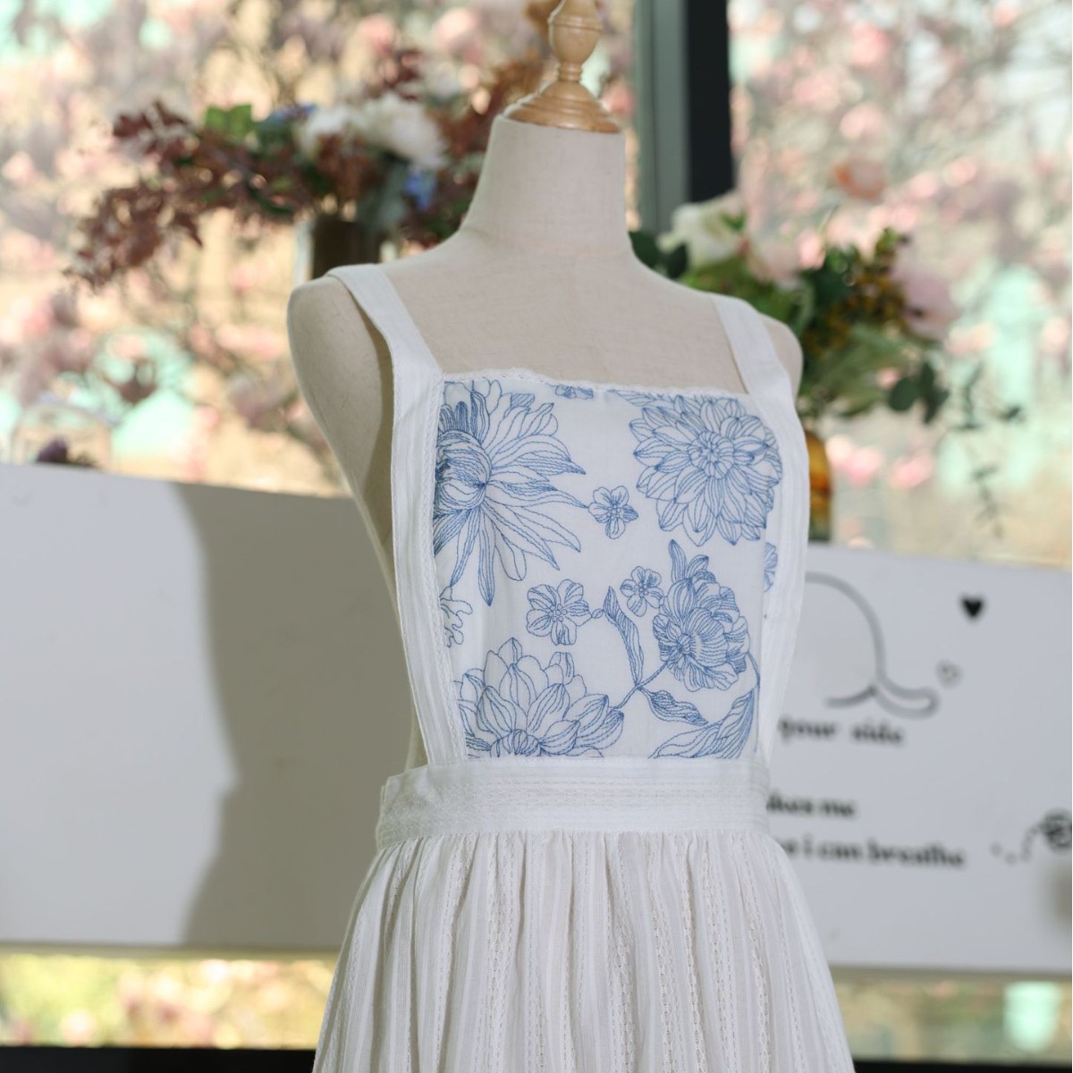 文芸純白刺繍ハスの葉のフリルの清新な田園の王女風エプロンの焙煎エプロンのフランス式レトロ