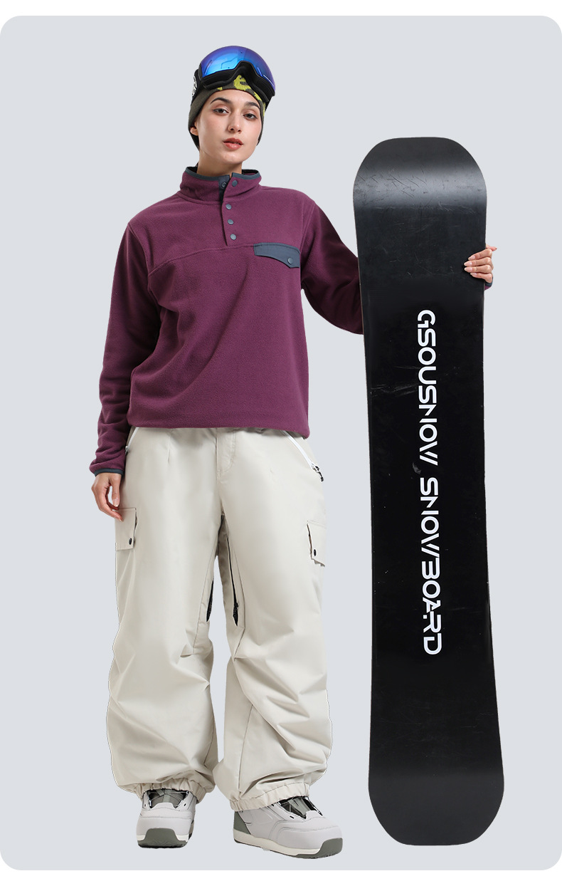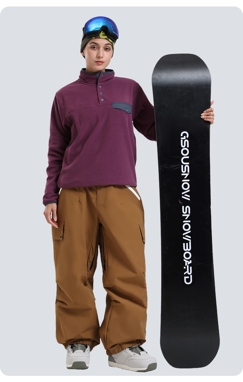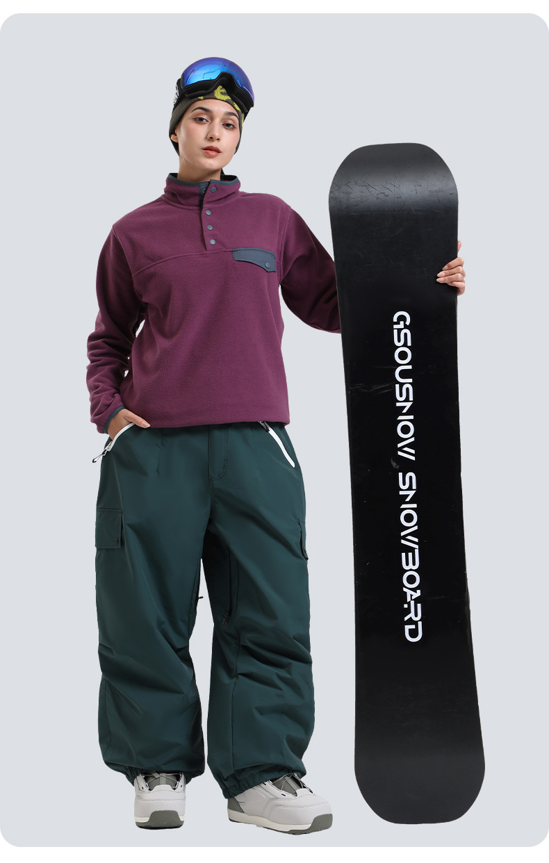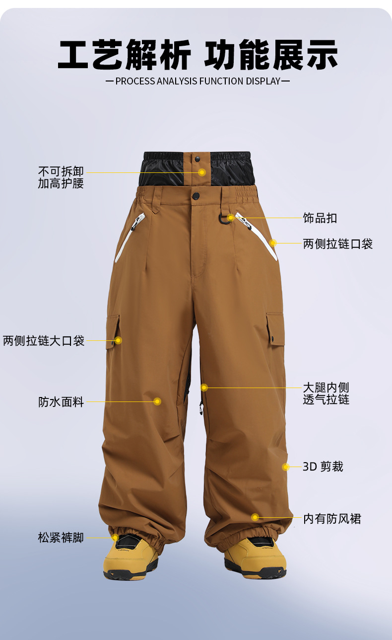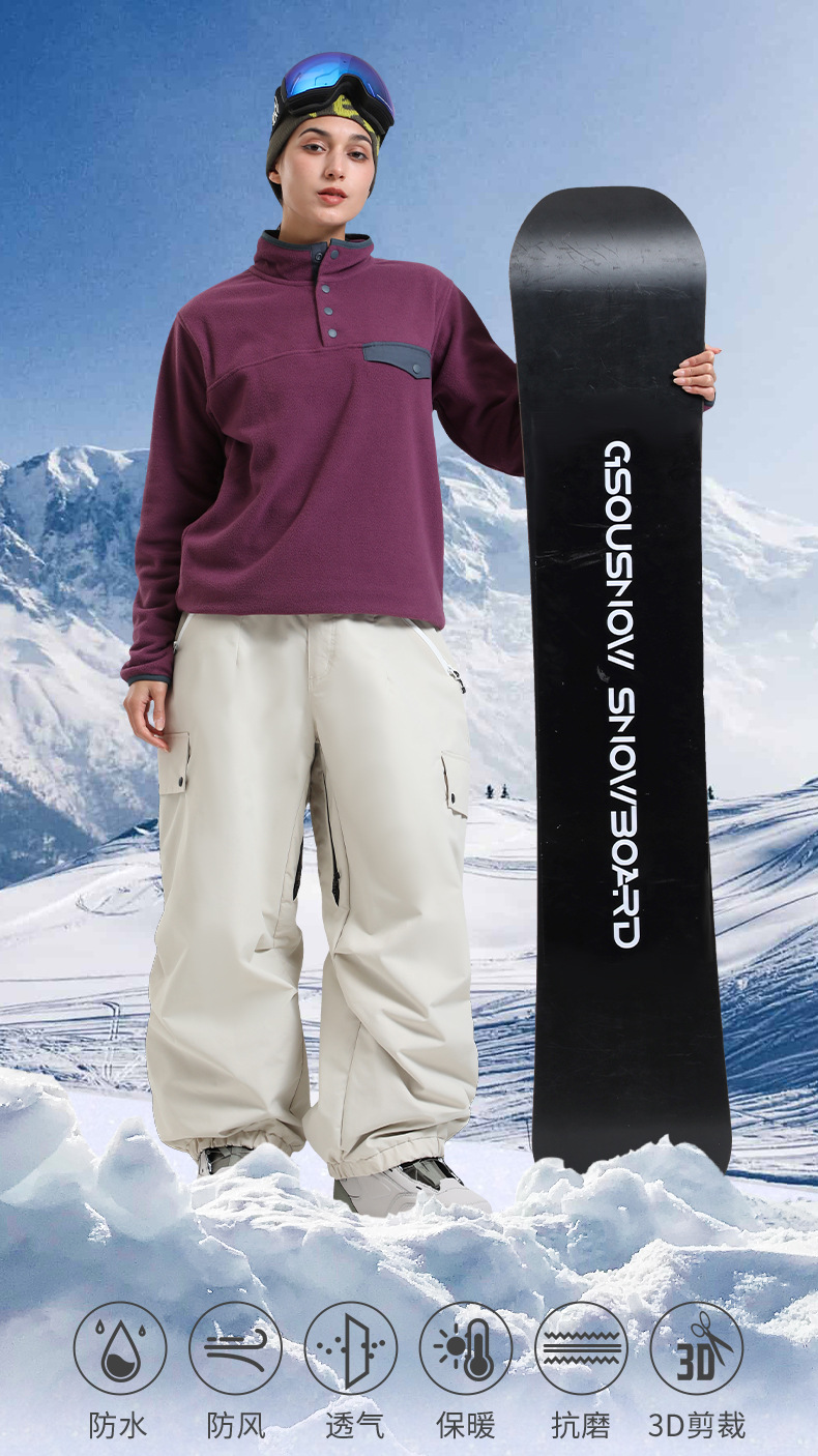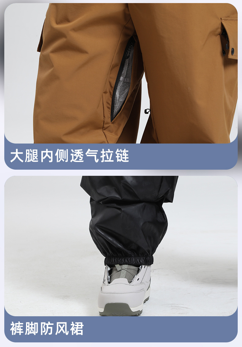 新款滑雪裤男宽松多口袋工装外贸防风单板户外运动防水滑雪裤女士