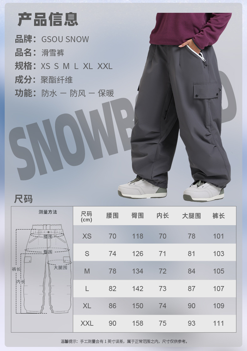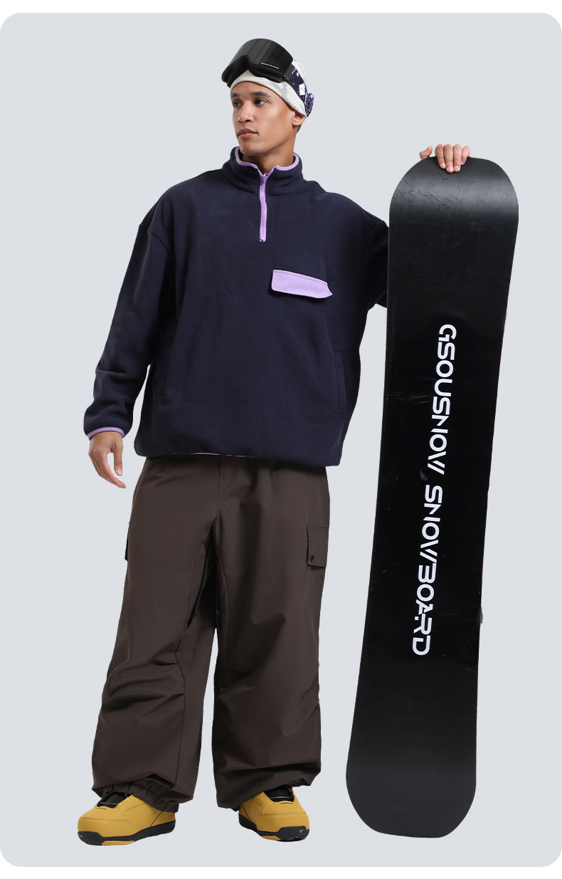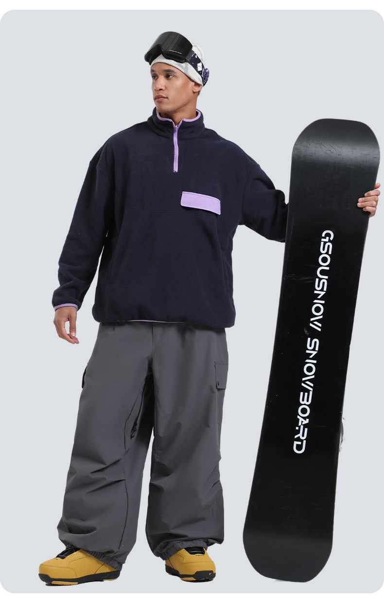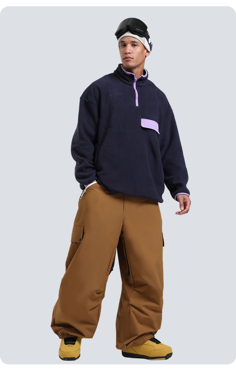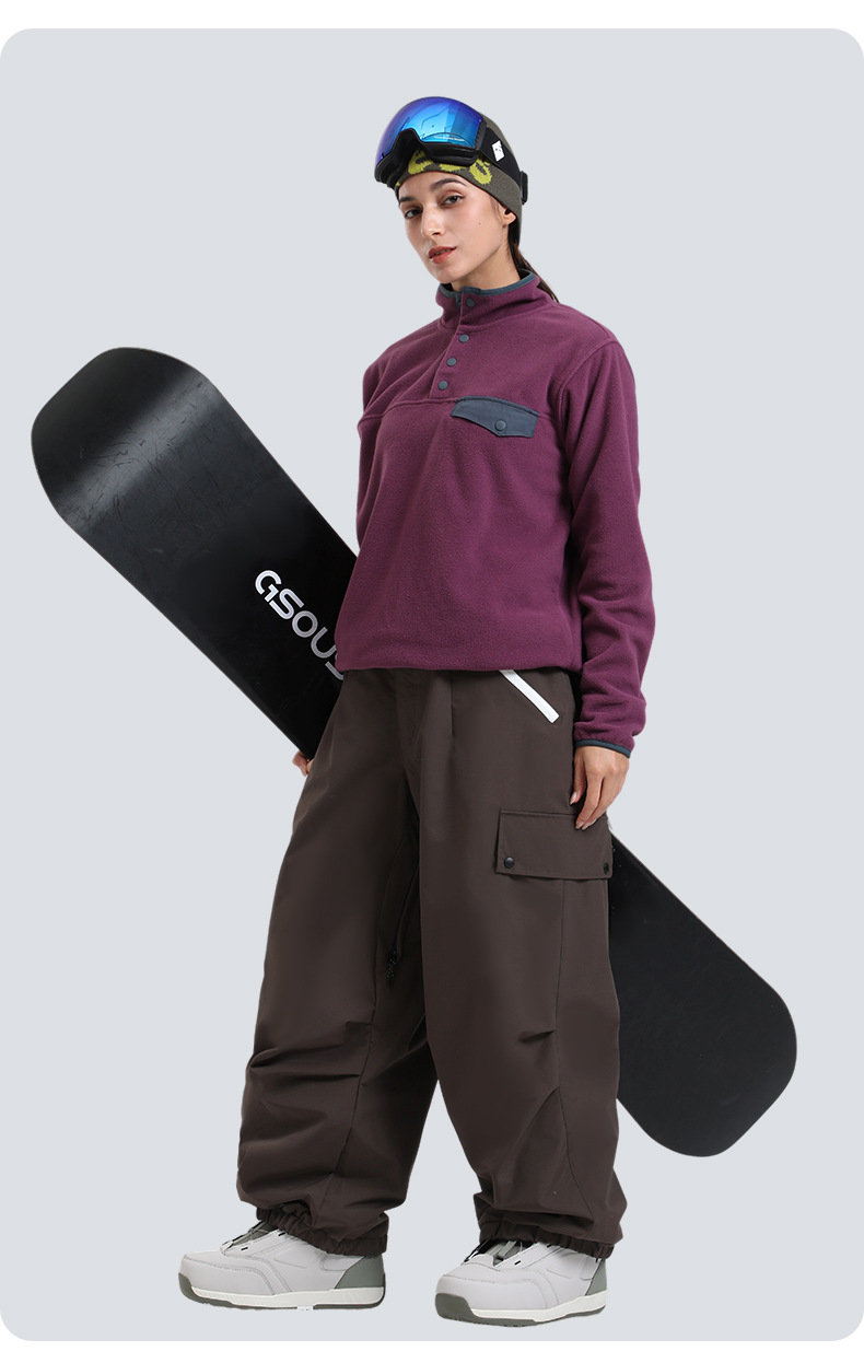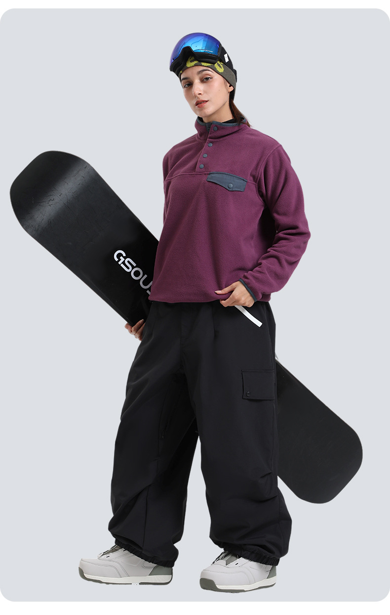 新款滑雪裤男宽松多口袋工装外贸防风单板户外运动防水滑雪裤女士