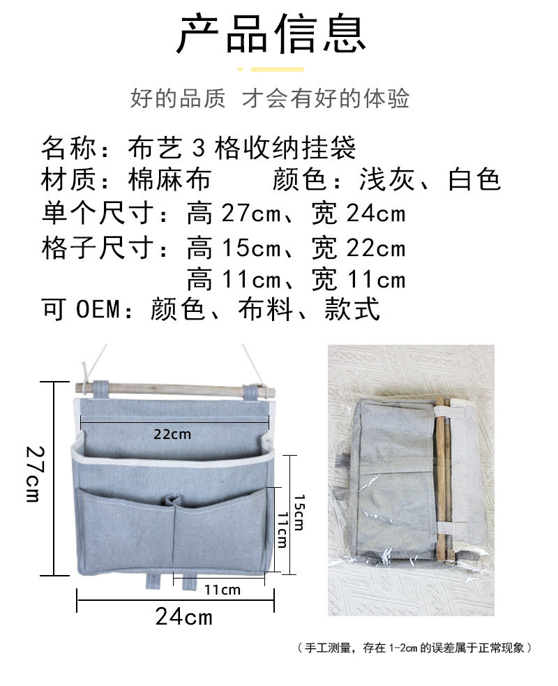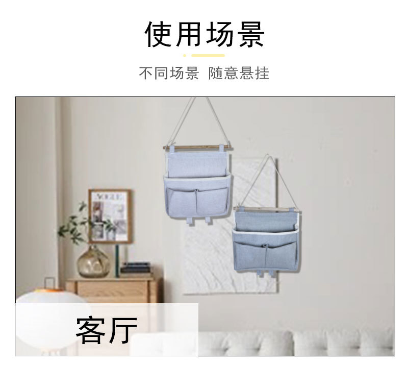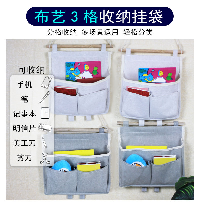 墙上收纳挂袋棉麻布艺可悬挂式宿舍床头壁挂钥匙手机收纳袋神器