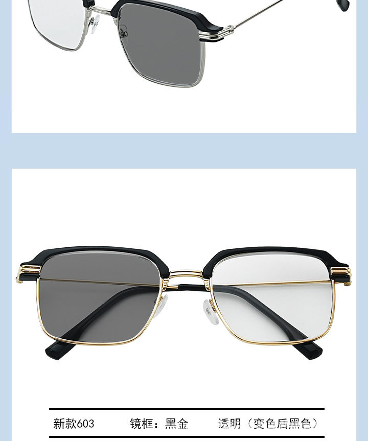 经典复古半框黑眉防蓝光老花镜智能感光变色中老年人阅读眼镜批发