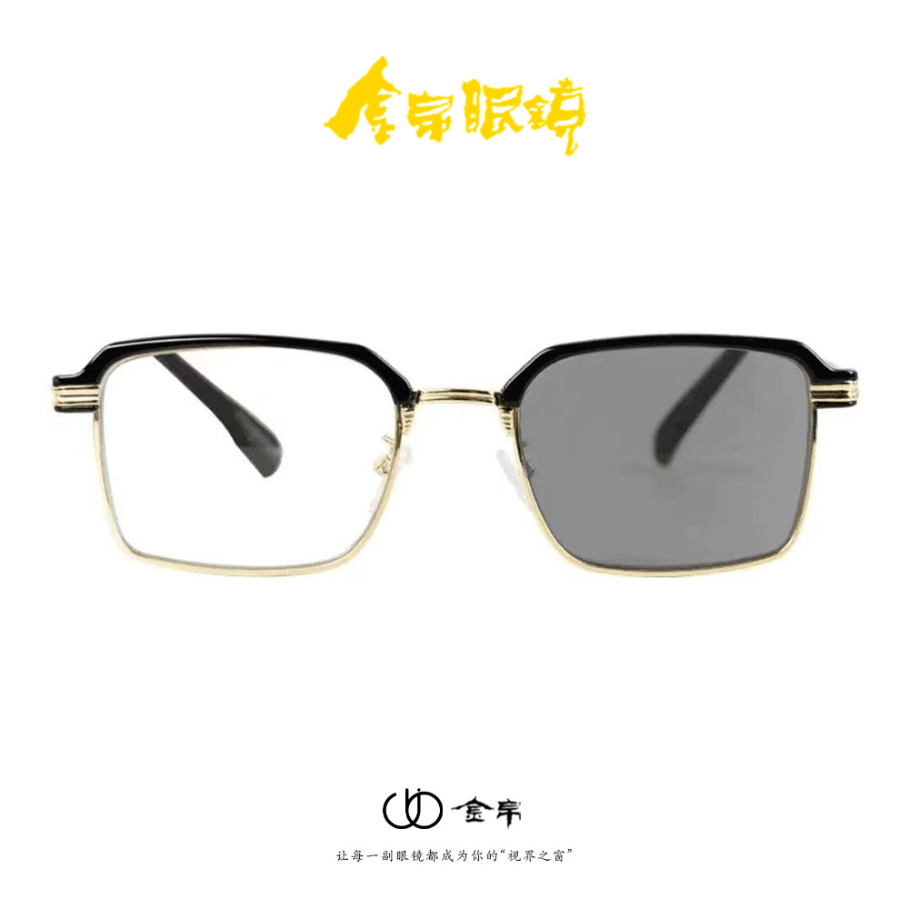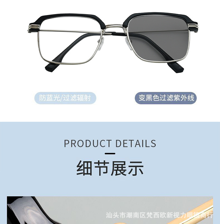 高級感のある調光近視メガネ、ブルーライトカット、スクエアフレーム、日よけ、ハイエンドファッション、ビジネス、高精細、度なしサングラス