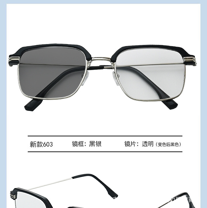 スマート感光変色老眼鏡自動調節度ファッションビジネス半枠高精細目ブルーレイ眼鏡男