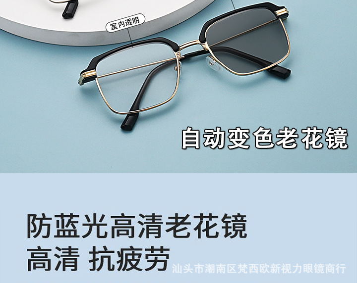 感光変色老眼鏡経典個性黒眉防ブルーレイ読書眼鏡中高年老眼鏡卸売り