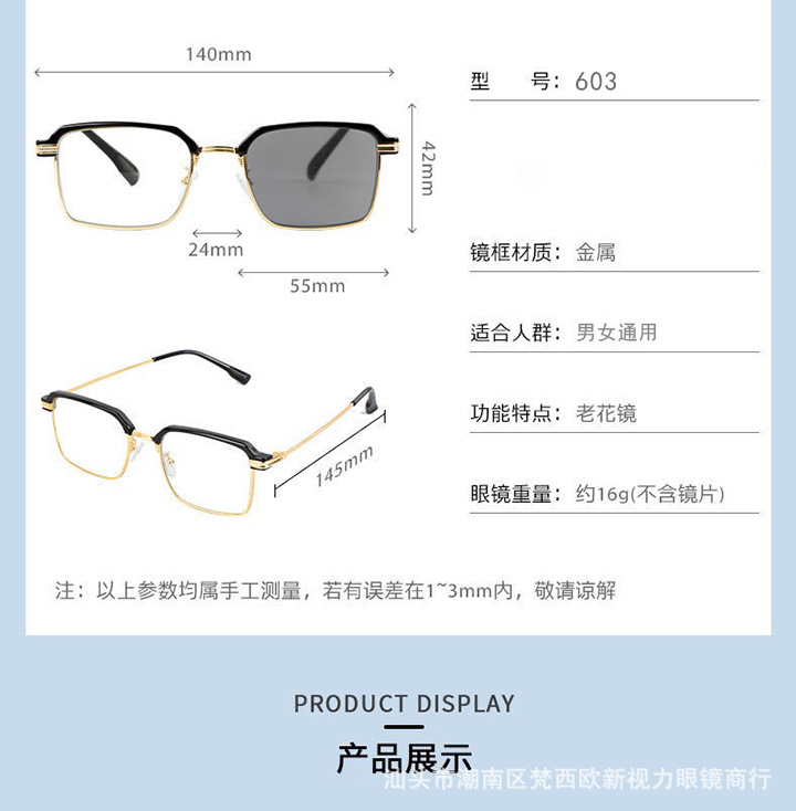 人気のブルーライト防止インターネットセレブXiaohongshu人気のフォトクロミック高精細トレンディなハーフフレーム卸売メーカー老眼鏡