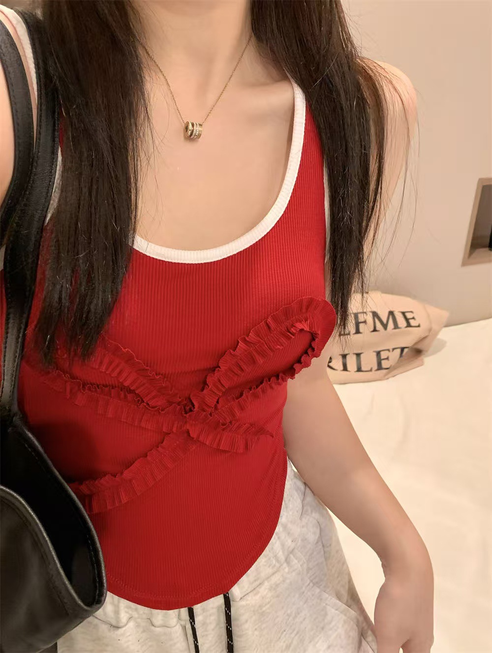 純綿のしわのガーターの底のベストの夏の短い金の美の背もたれの胸のパッドの袖なしの上着の女性の中でギャルを掛けて外に着ます。