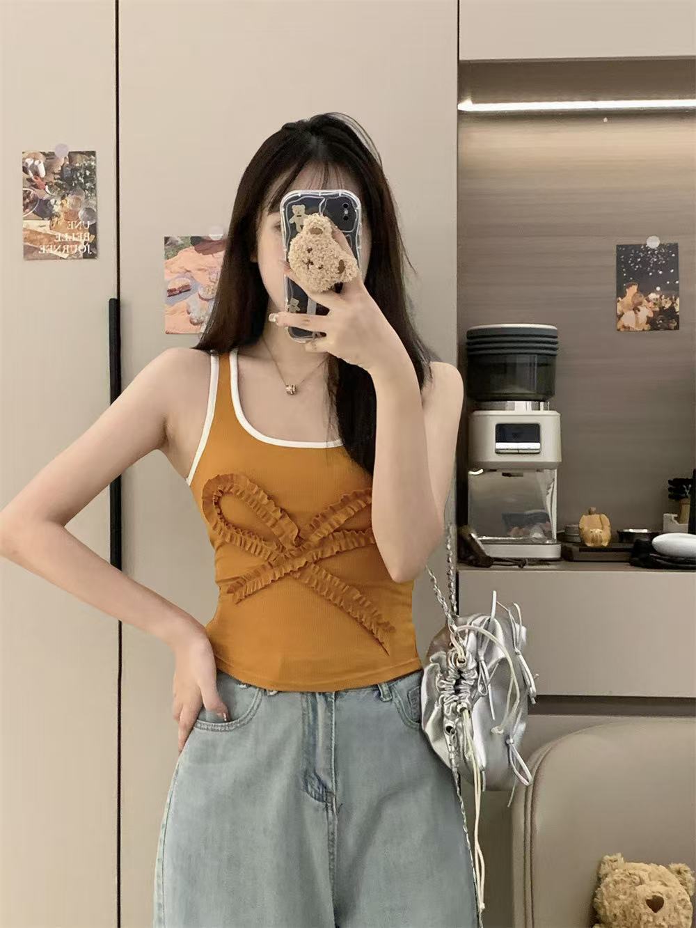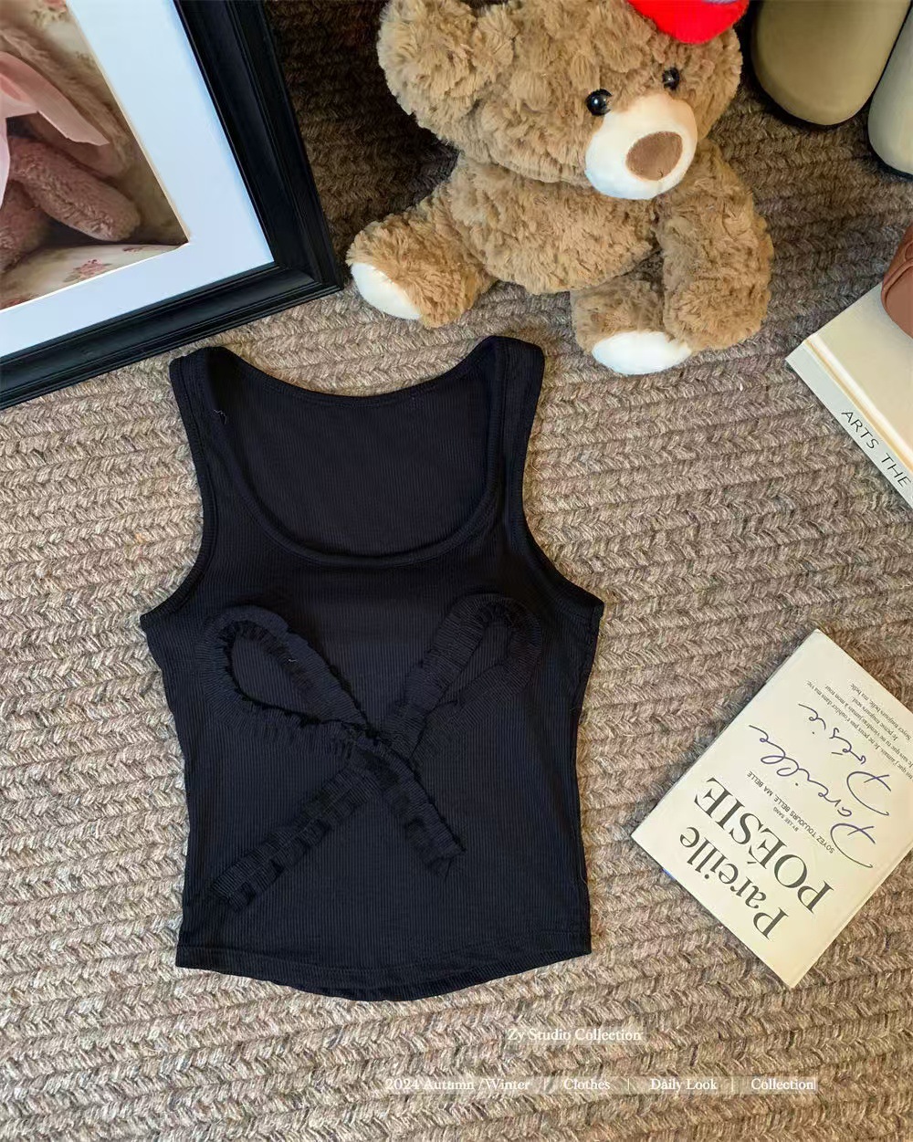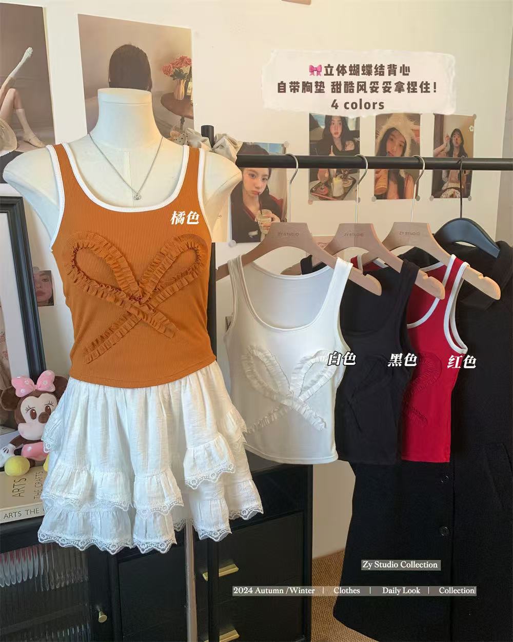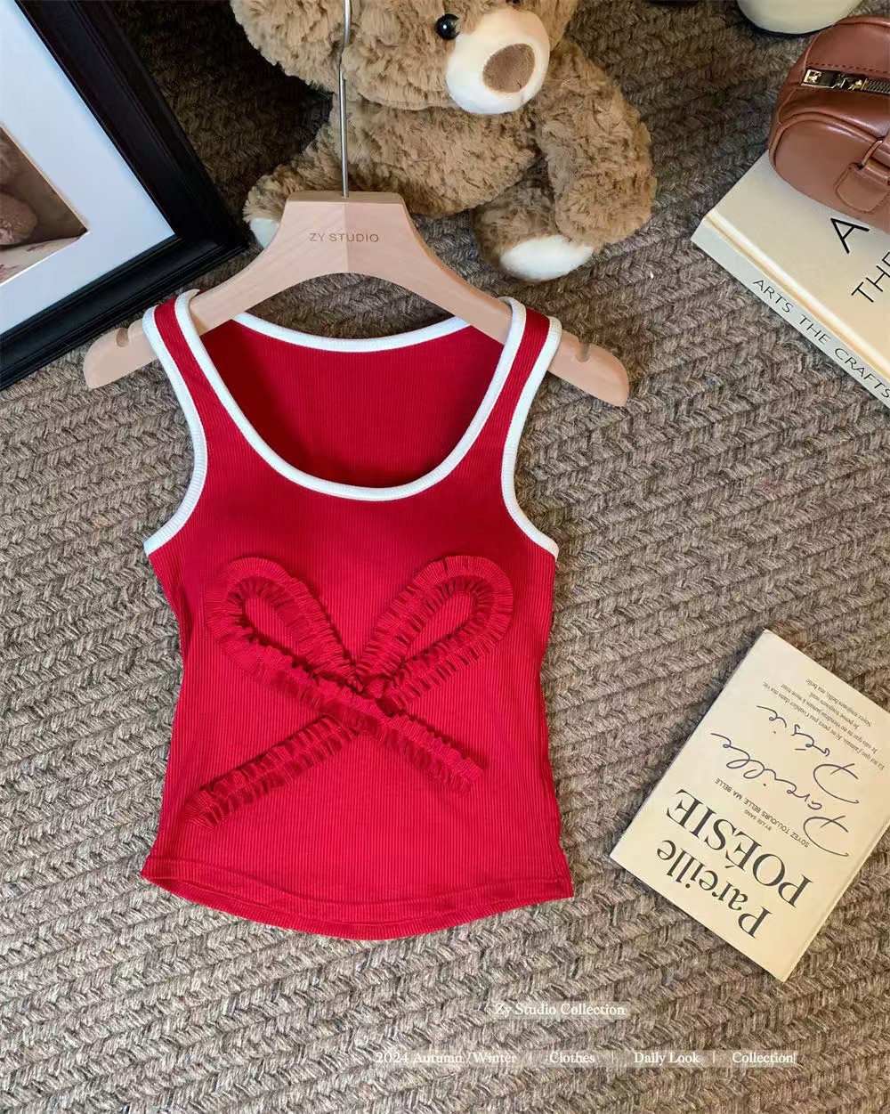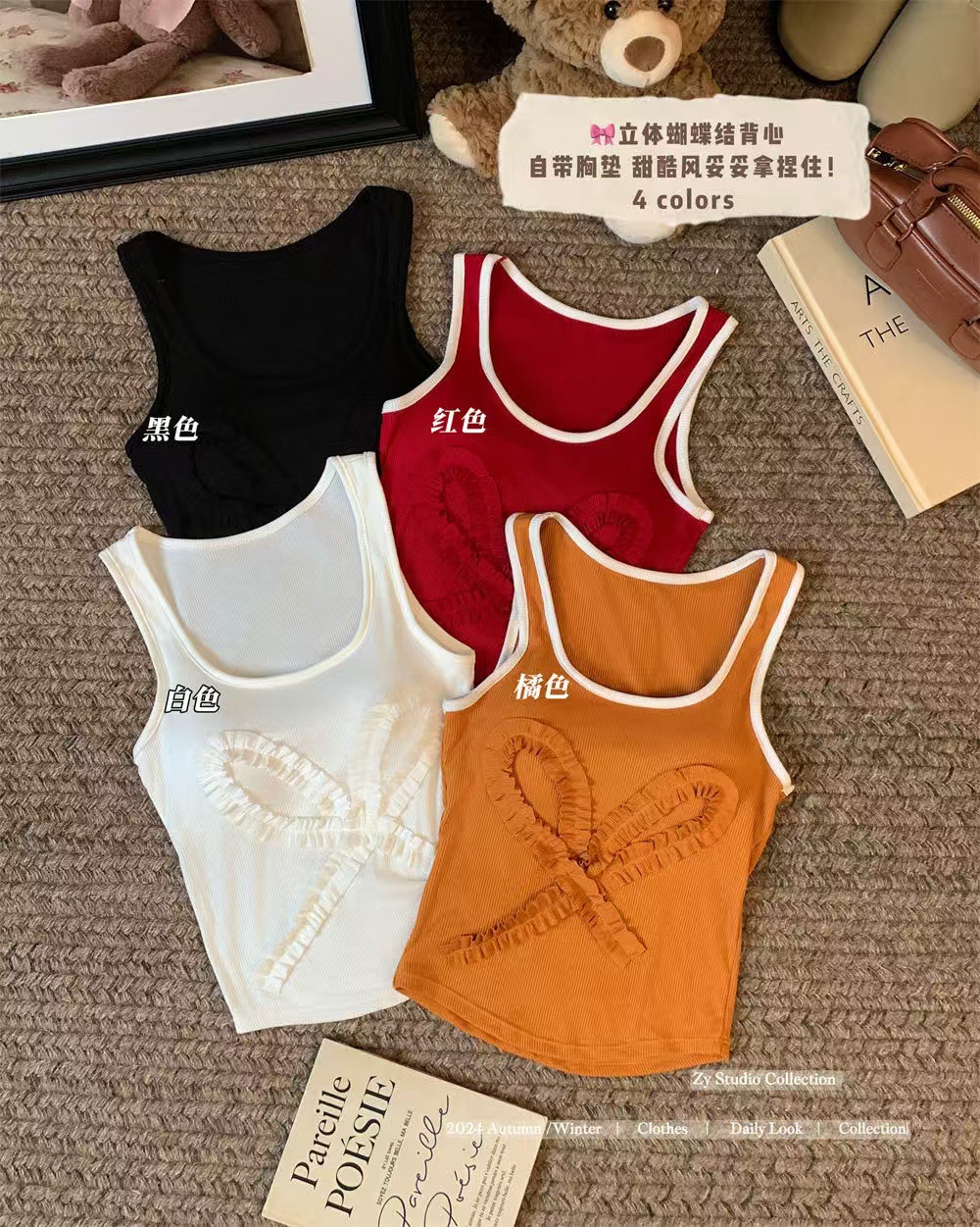 セクシーなギャルの蝶結びのキャミソールの女性の夏の胸のパッドの新型のデザイン感は色の四角な襟の外で上着を着ます。