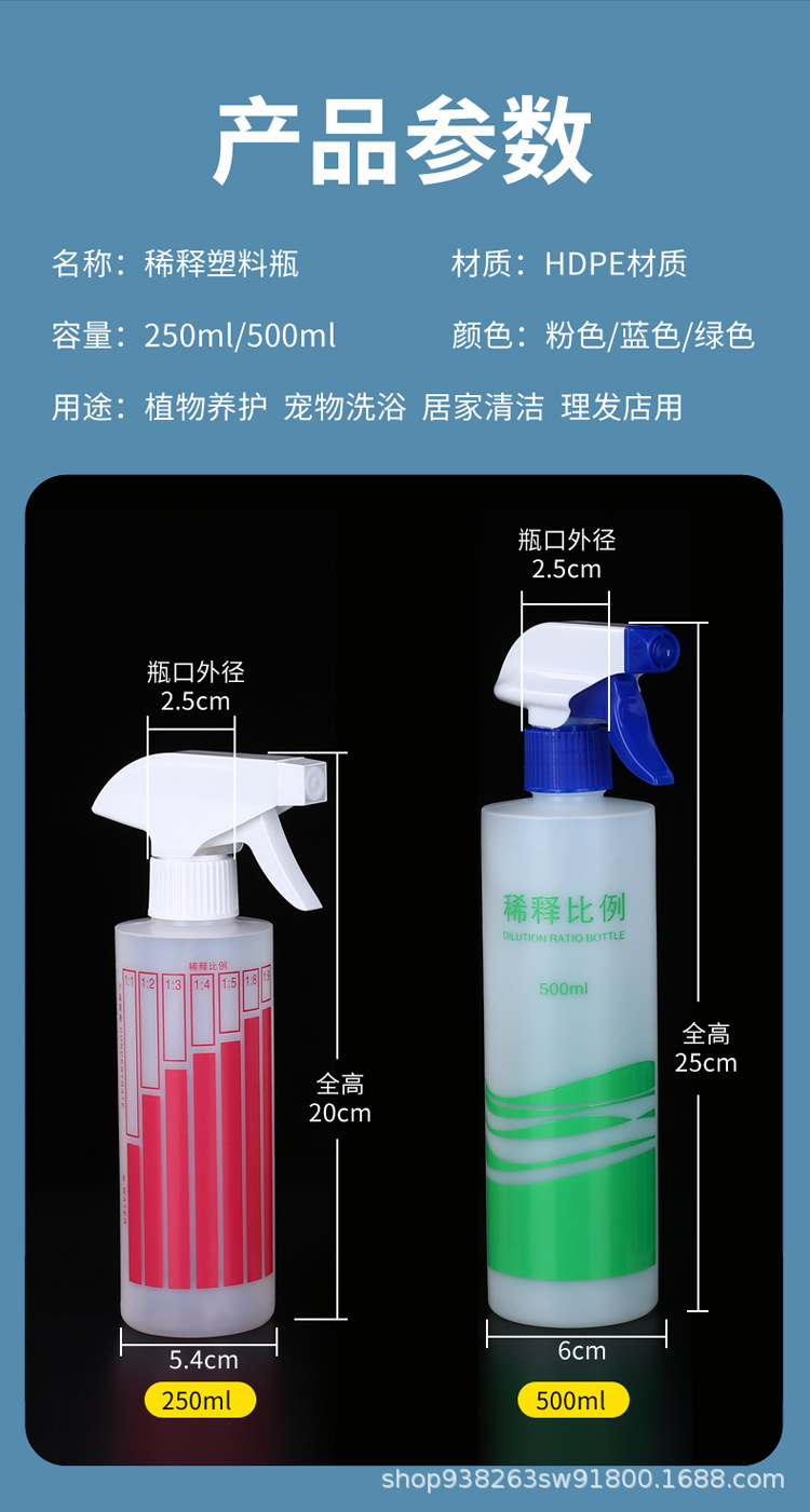 卸売り250ml 500ml希釈配合スプレーボトルアルコール比例希釈瓶ペット配合瓶ピストルスプレーポット