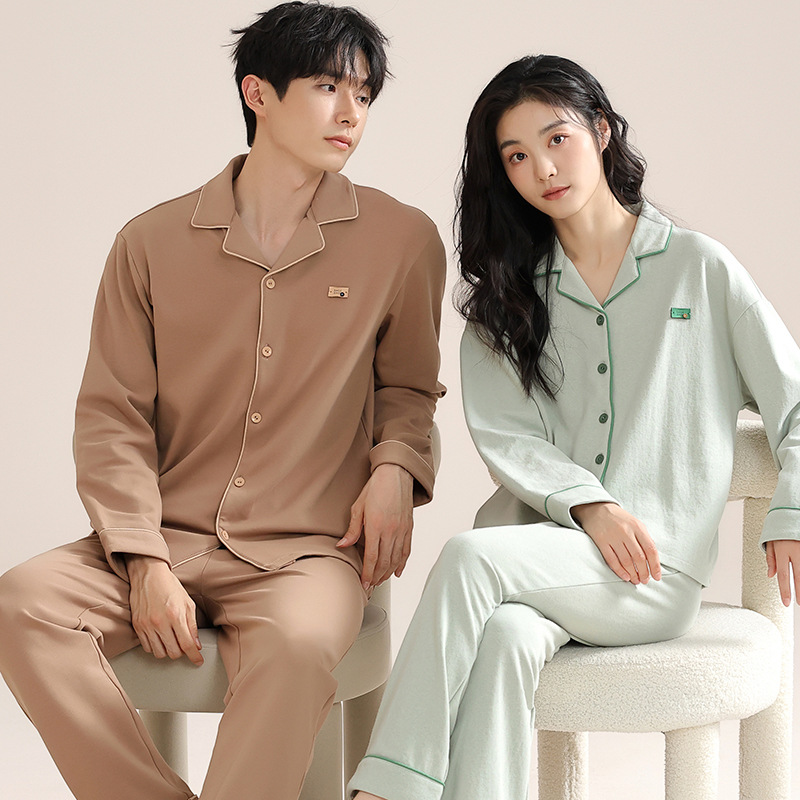 2025 新しいカップルパジャマ純綿長袖カーディガンズボンカジュアルで快適なホームウェアセットは屋外で着用できます