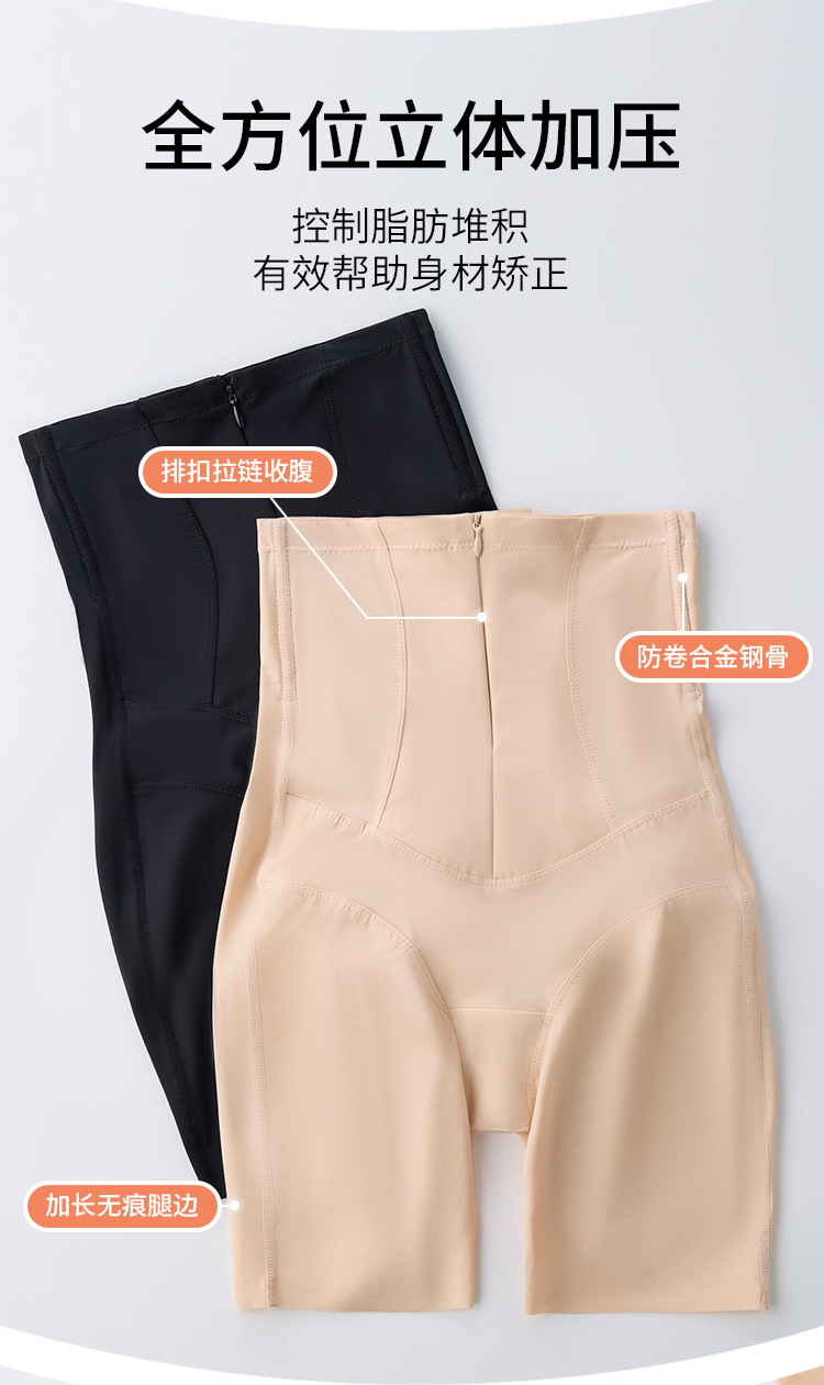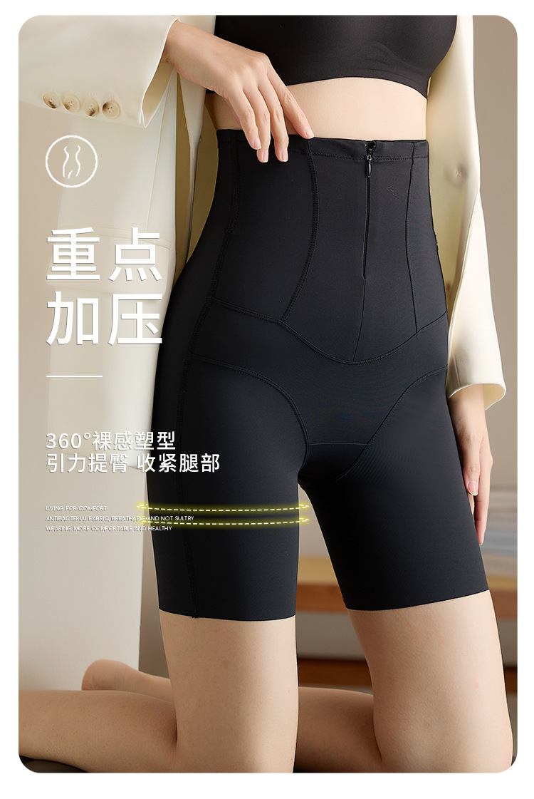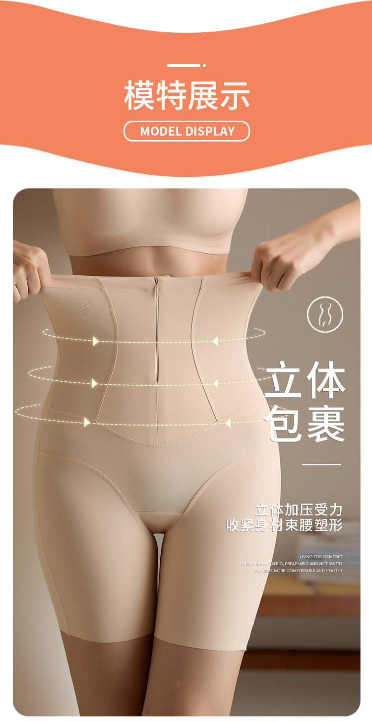 5Dシームレスボディシェイピングハイウエストボクサージッパータイプおなかコントロールパンツ、圧力シェイプアップ立体ヒップリフティングボディシェイピングパンツ
