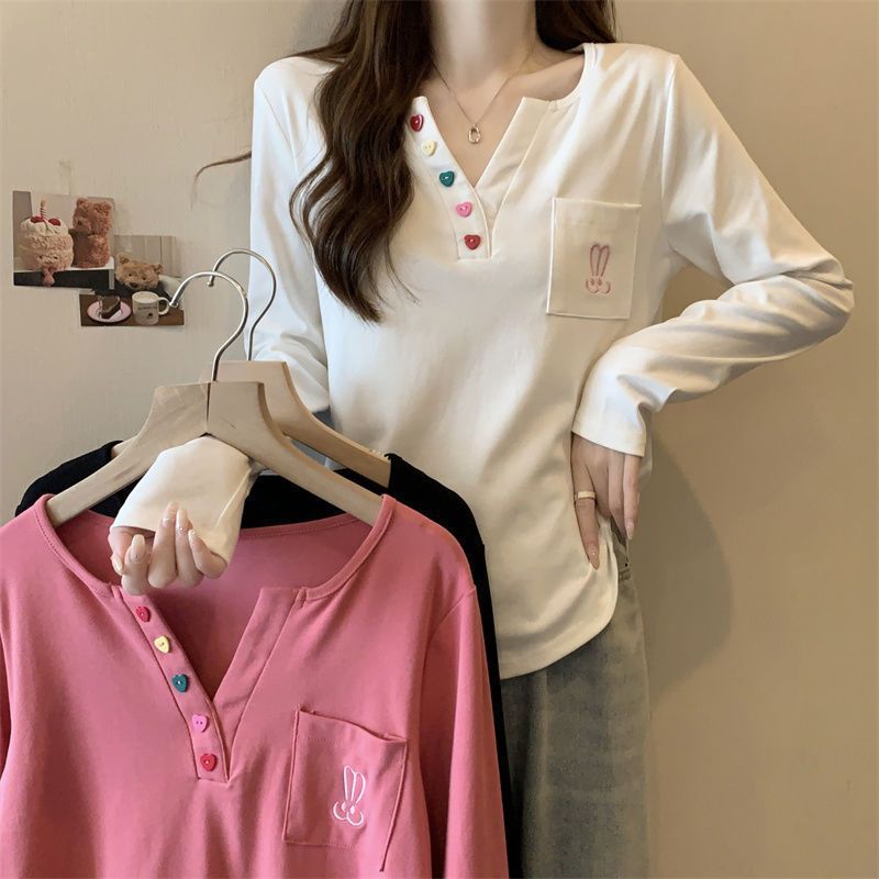 大码女装刺绣正肩长袖t恤打底衫秋冬季胖mm遮肚子显瘦内搭上衣潮