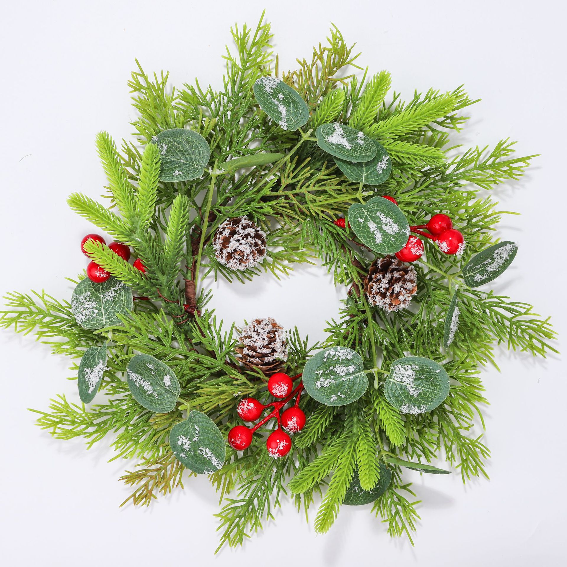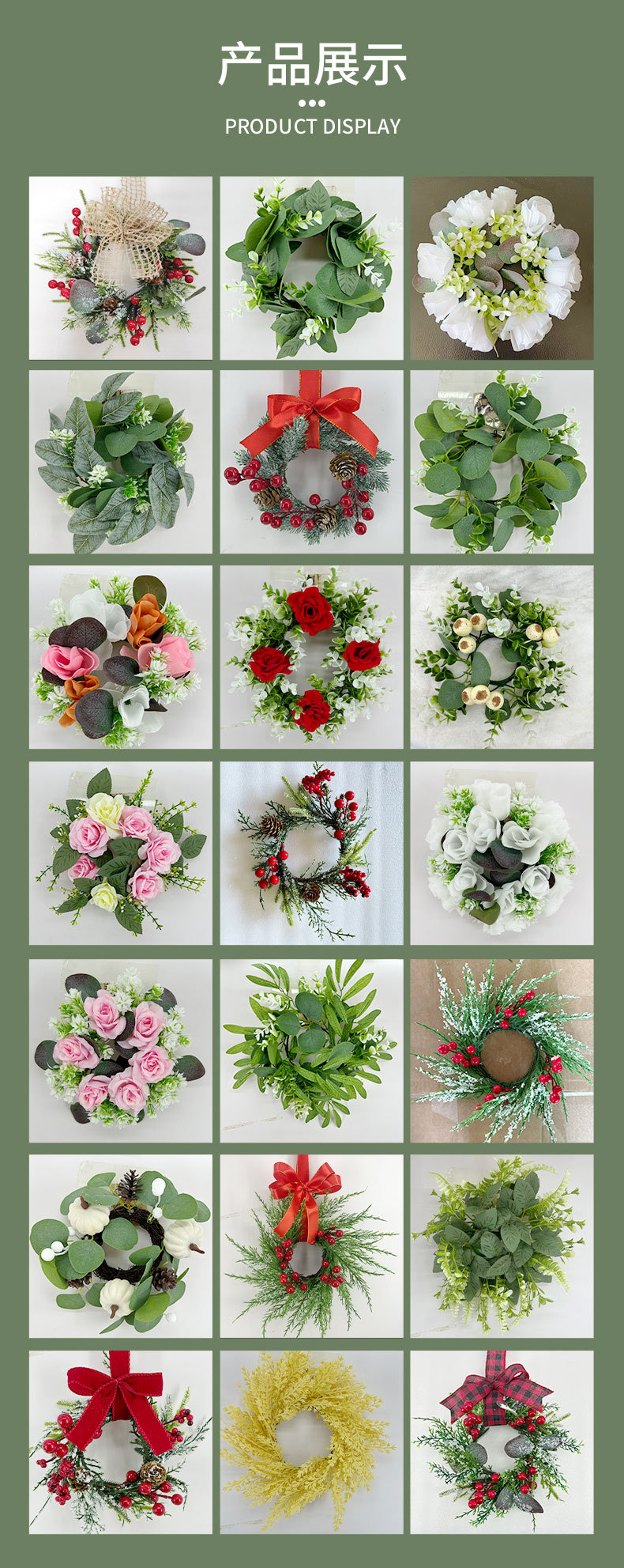 アメリカのシミュレーション花環尤加利茶花門柵装飾花輪クリスマスペンダントカラー造花シミュレーション緑植