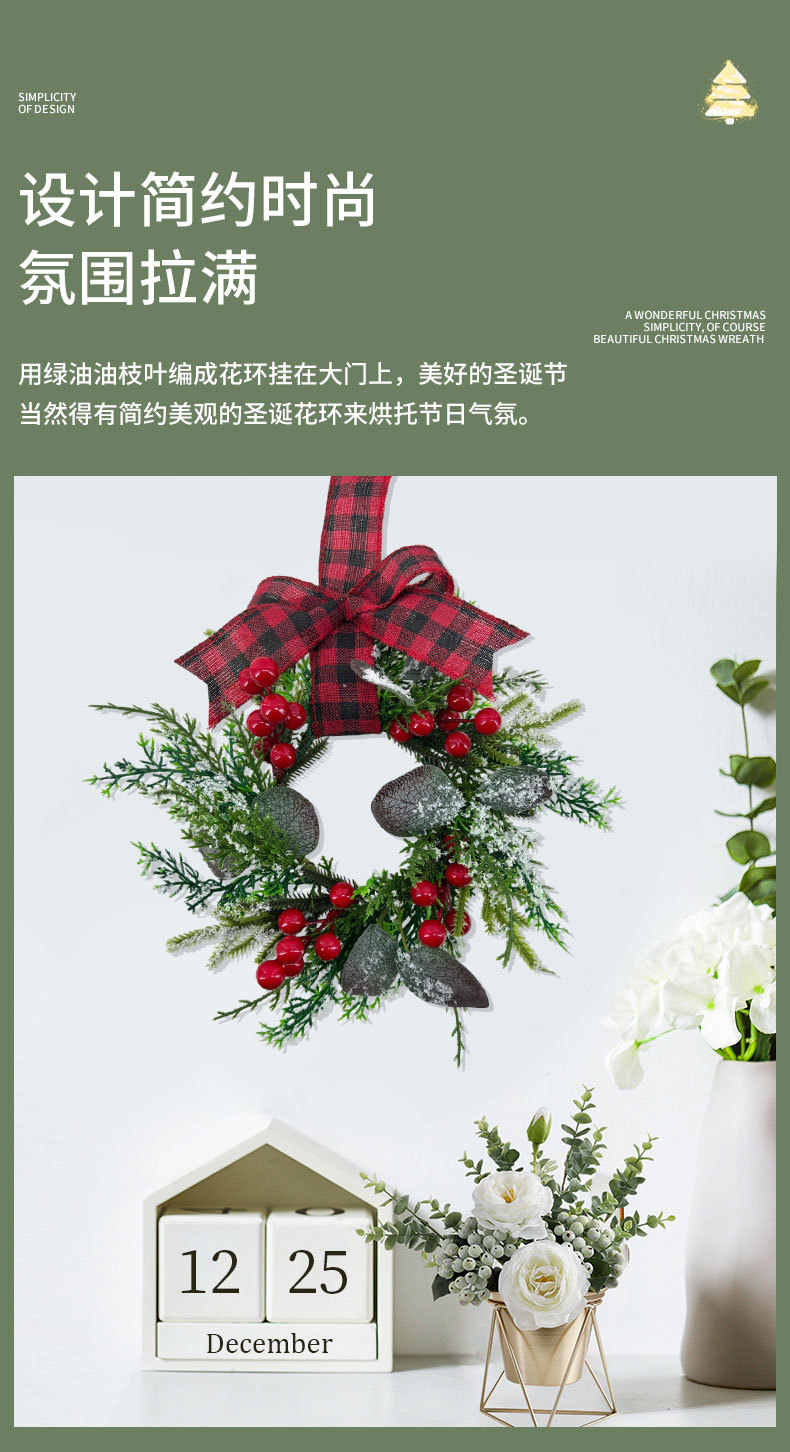圣诞橱柜花环厨房带丝带蝴蝶结红莓小窗口花环圣诞派对装饰
