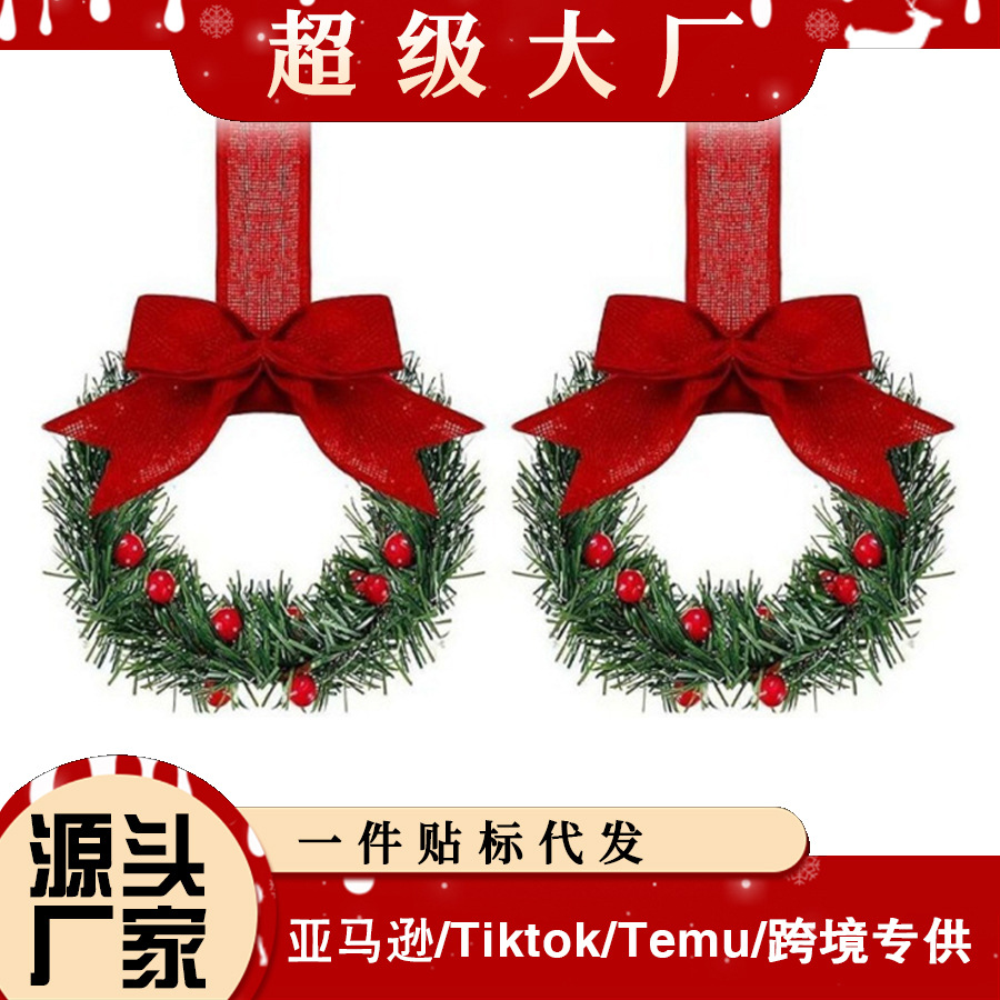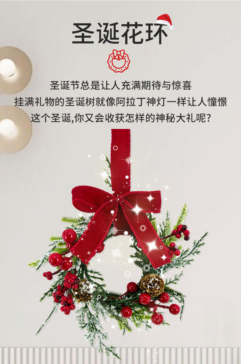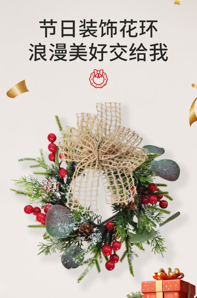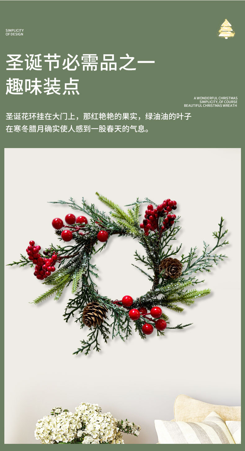 圣诞装饰品花环橱窗布置门挂场地布置圣诞花环批发藤圈圣诞球浆果