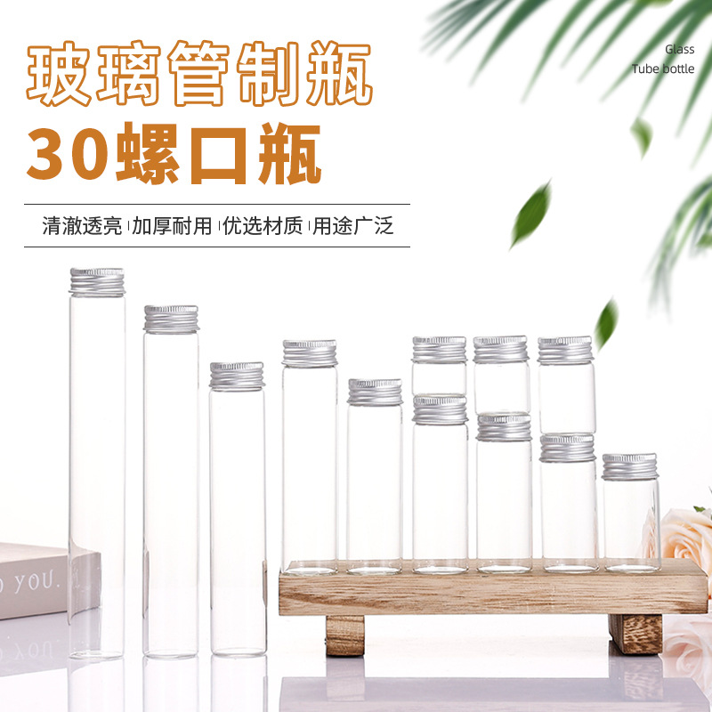 30mmネジ口管状ボトル、巻き縁シルバーアルミキャップ、多様な仕様の冬虫夏草包装ボトル、透明ホウケイ酸ガラス製漂流ボトル