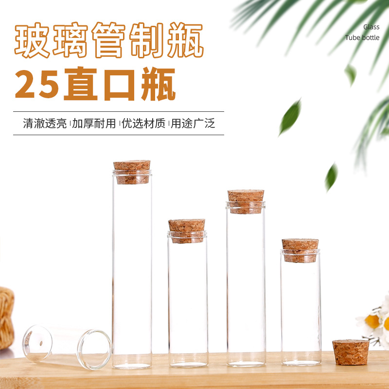 コルク栓ストレート口パイプ瓶直径25mm高ホウ素シリコンガラス瓶多規格サンプルシール瓶虫草分注