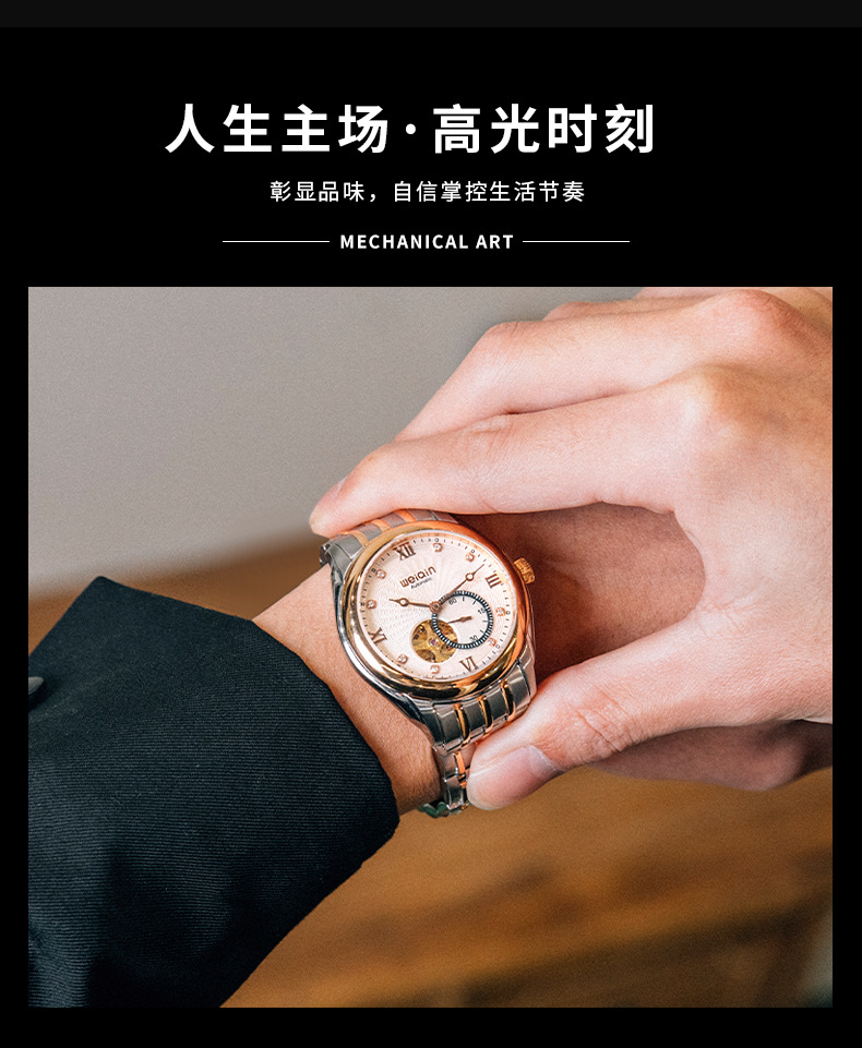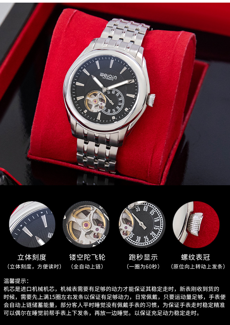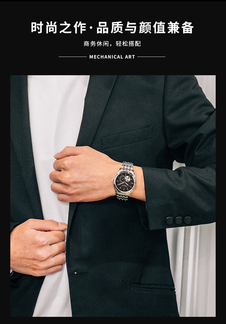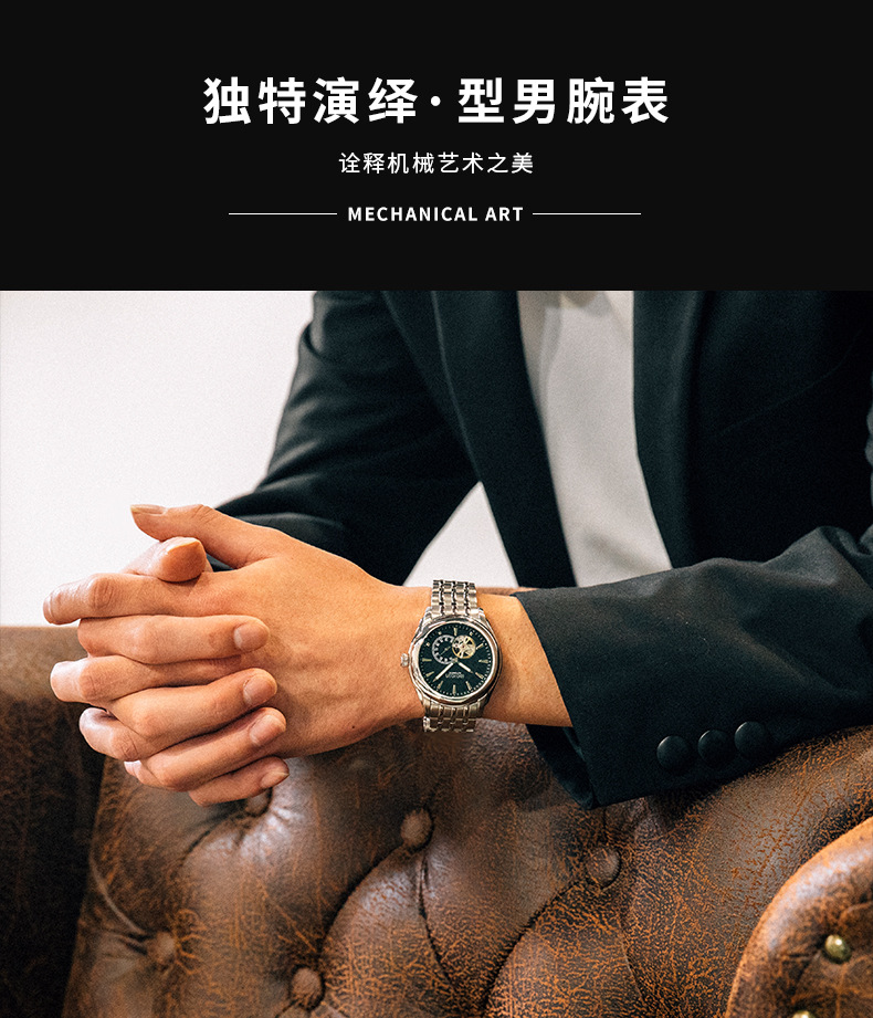 公式正規品腕時計男性用透かし彫り全自動機械腕時計高級ファッションビジネス鋼帯夜光防水金