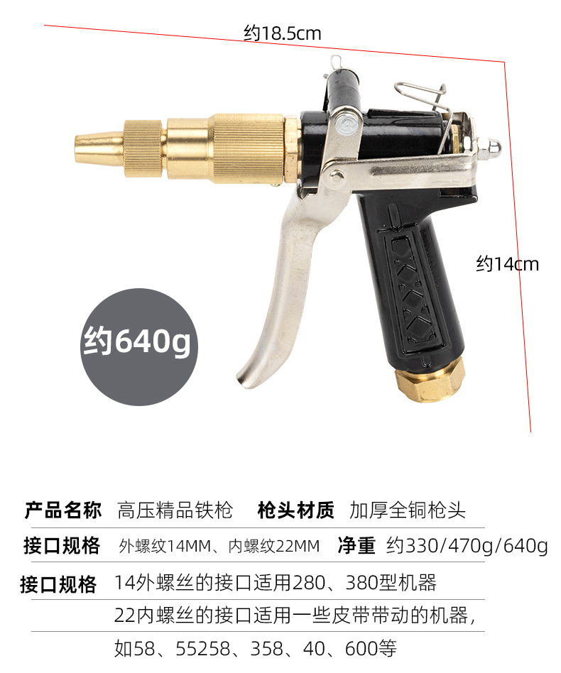 55増厚型全銅洗車機高圧水鉄砲ノズル58/380高圧スプレーガン洗浄機部品280