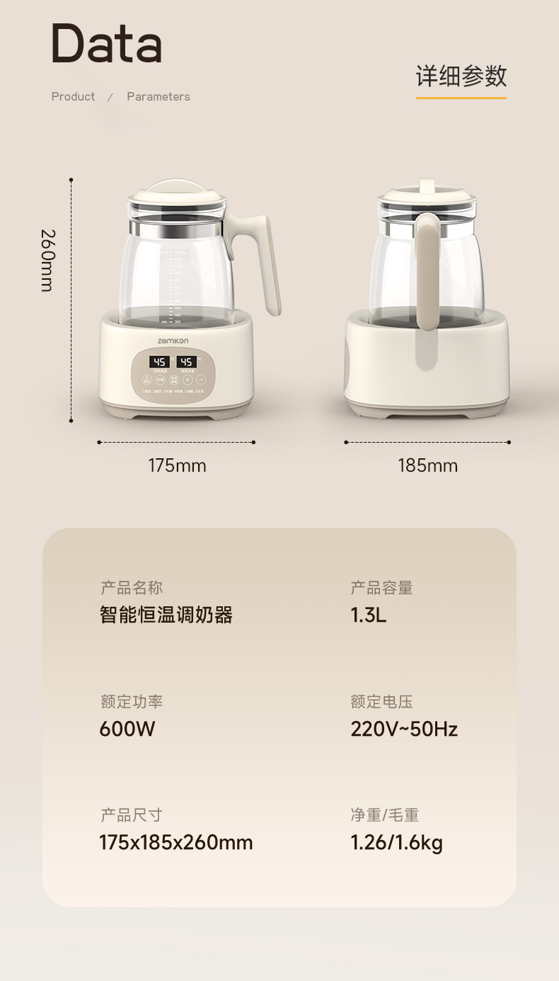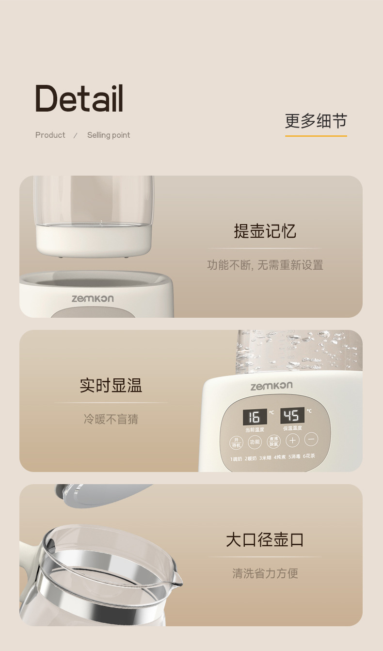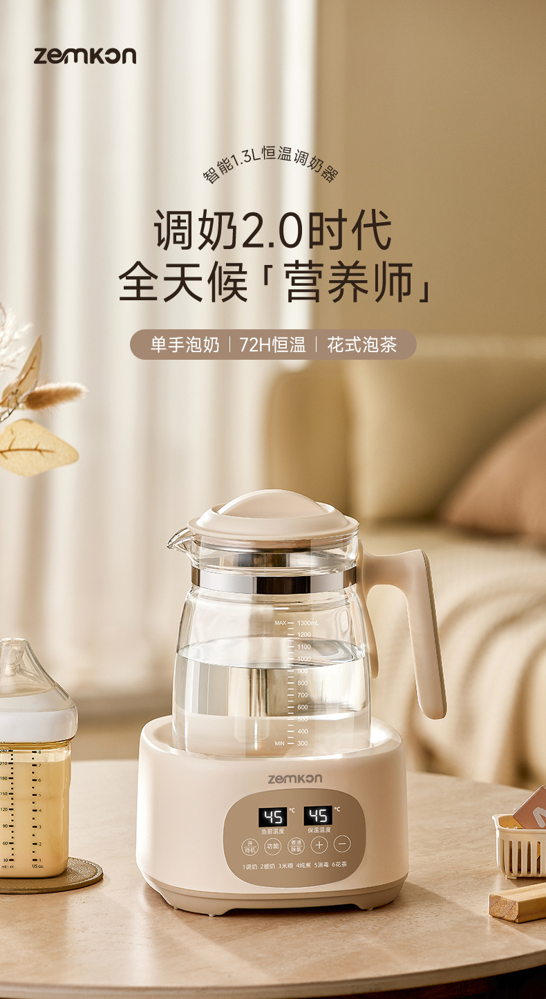 Zemkon德国养生壶安全恒温电热水壶家用智能保温泡奶机婴儿调奶器