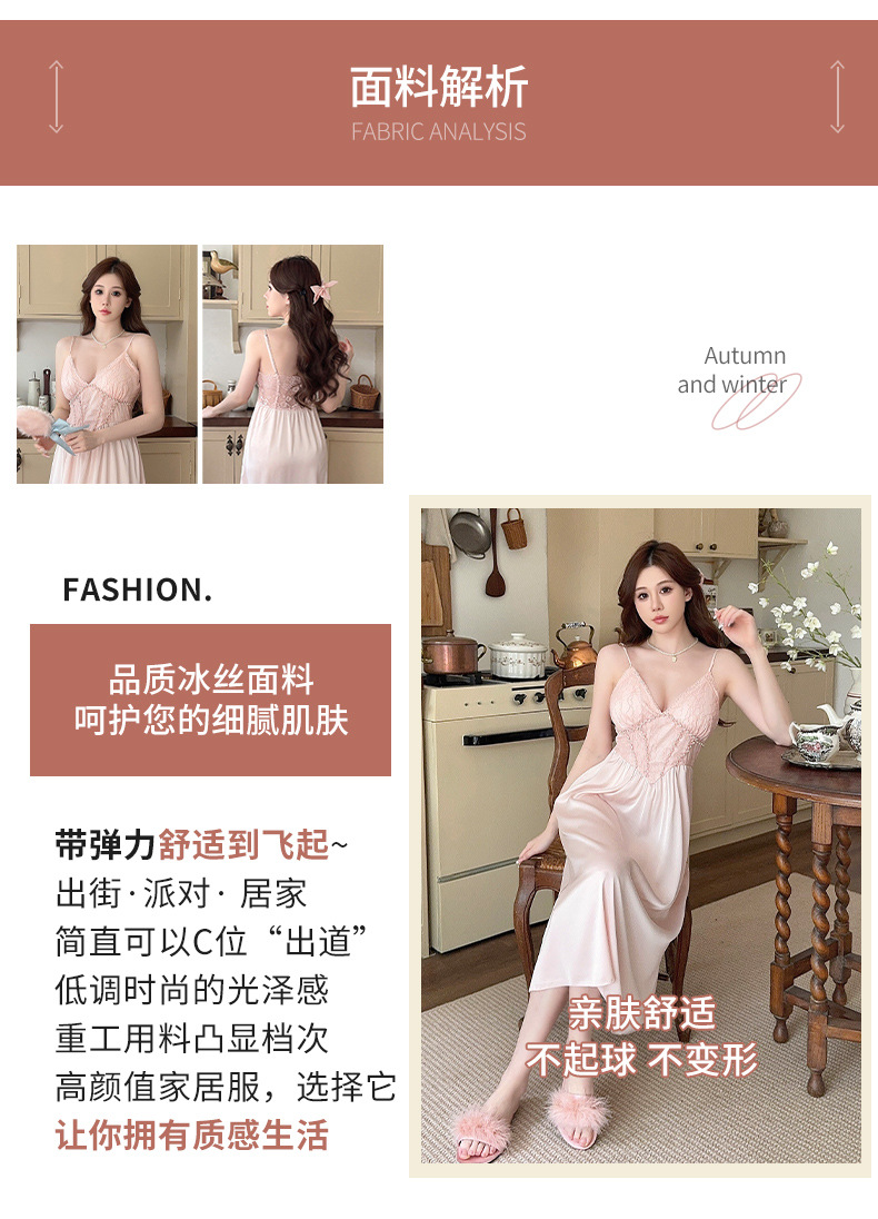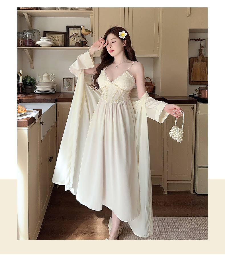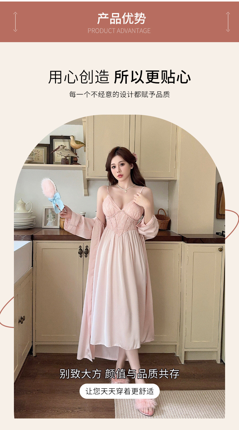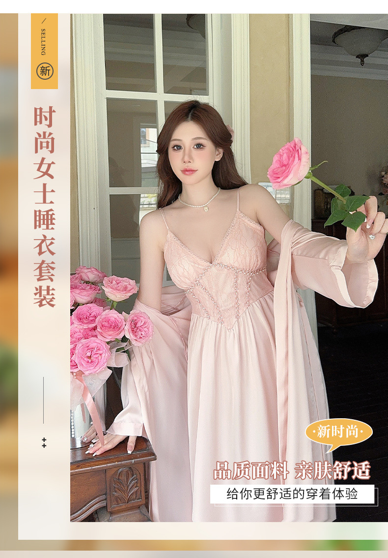 女性用サスペンダーナイトガウン、快適でセクシー、純粋な魅力、彼女へのプレゼントに最適、レースサスペンダーナイトガウン2点セット、春・秋の新作