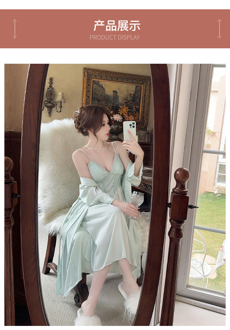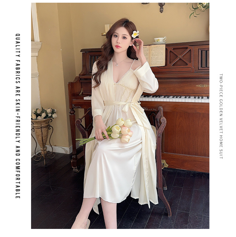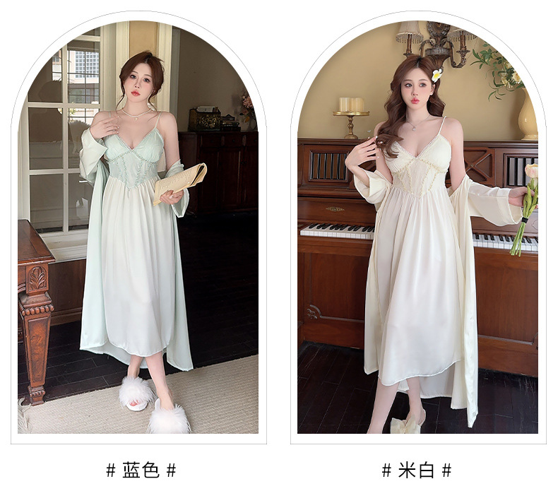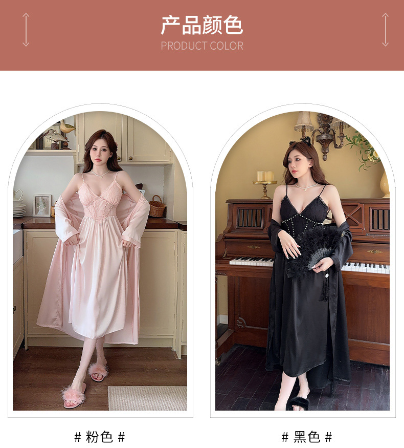 女性用サスペンダーナイトガウン、快適でセクシー、純粋な魅力、彼女へのプレゼントに最適、レースサスペンダーナイトガウン2点セット、春・秋の新作