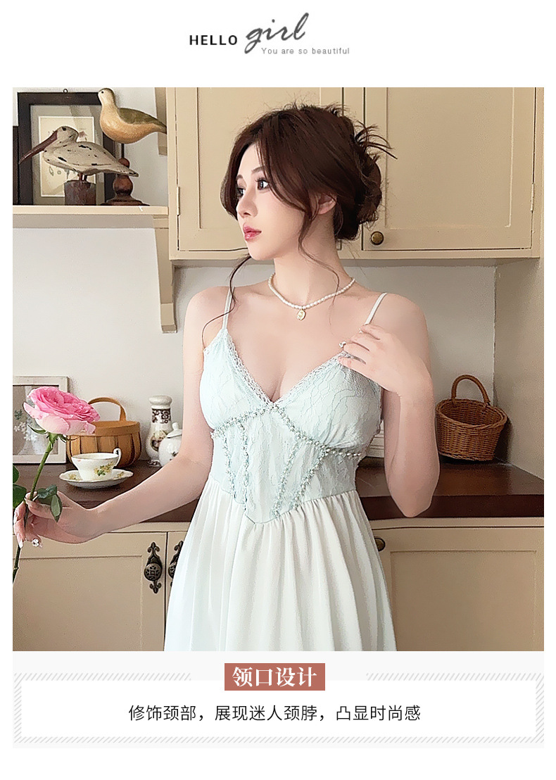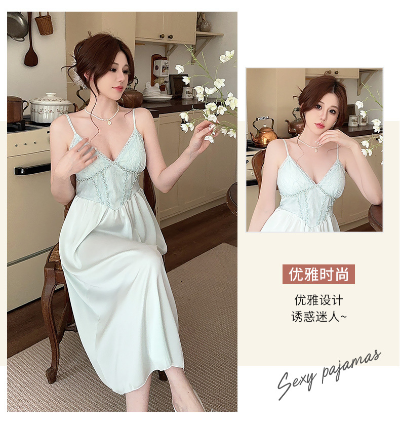 2024項ins風深v寝スカートサテンシフォン家庭カジュアルパジャマセクシーストラップ薄手ストラップスカート
