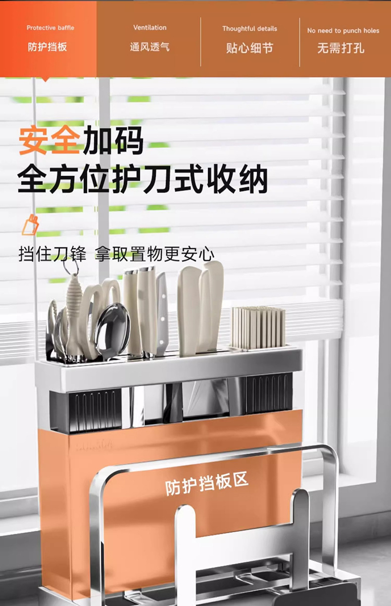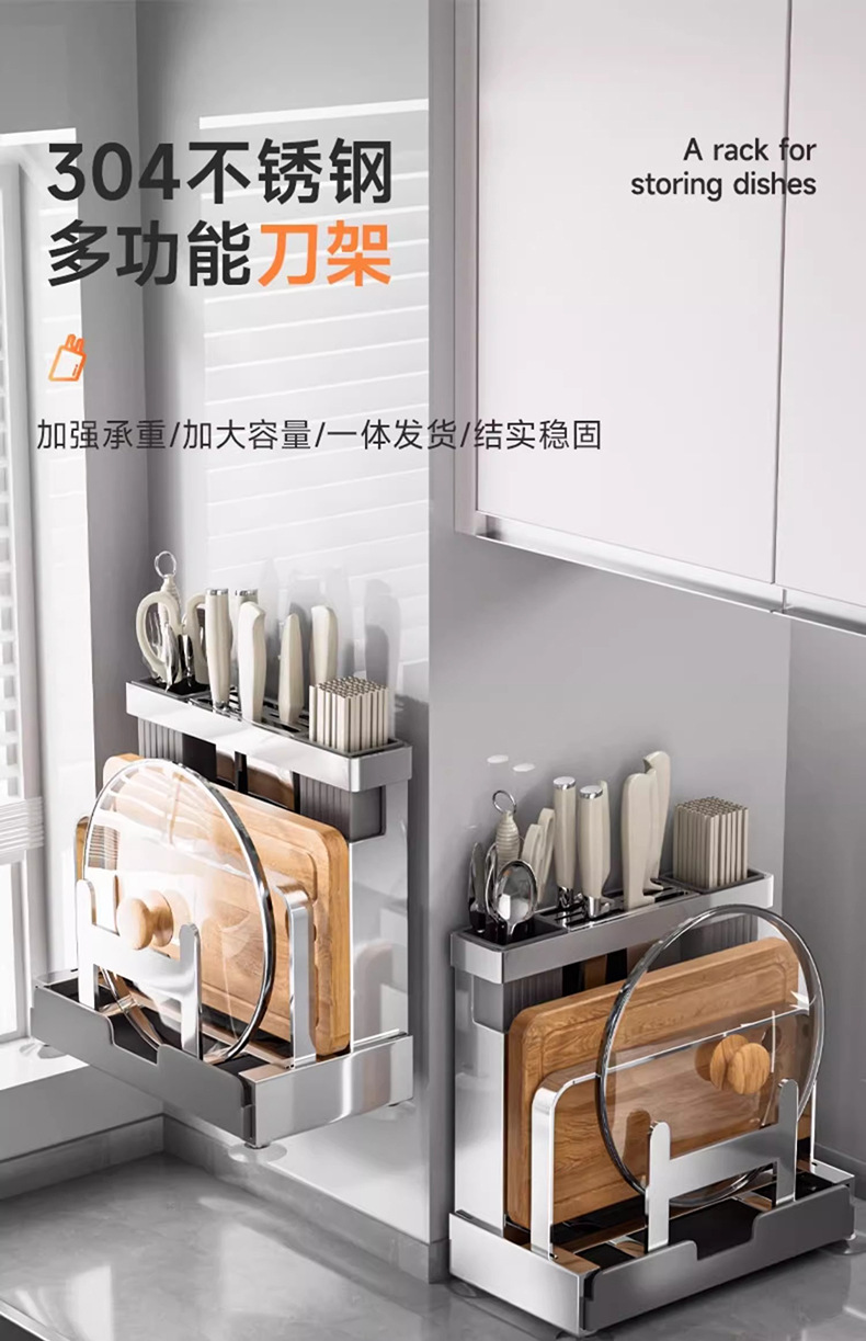 304不锈钢厨房刀架置物架砧板架一体筷子刀具收纳架置物架菜刀架
